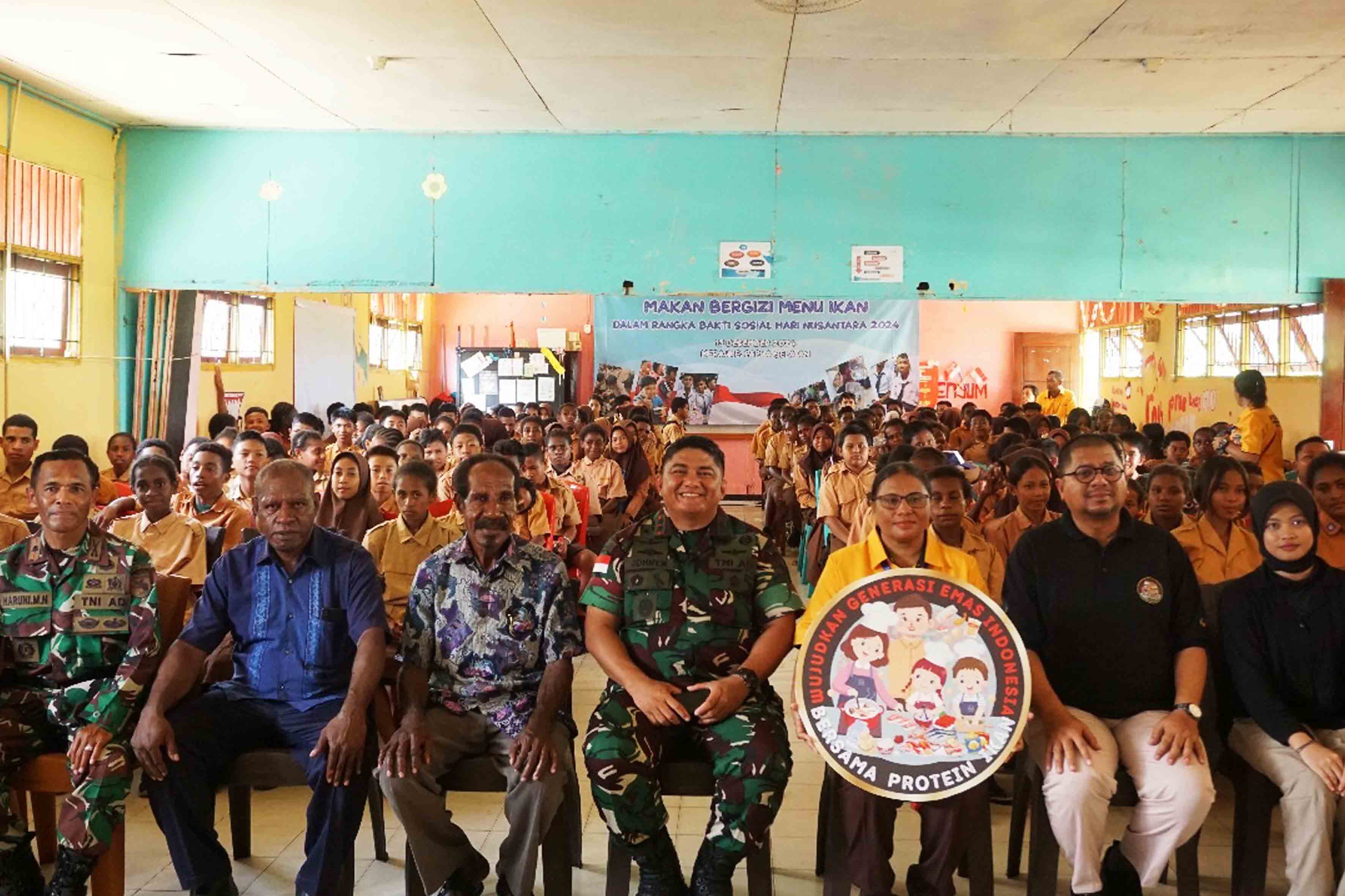 Dalam rangka memperingati Hari Juang TNI AD Ke-79 Tahun 2024 dan Bulan Bakti Hari Nusantara Tahun 2024, Kementerian Kelautan dan Perikanan (KKP) Republik Indonesia menyelenggarakan kegiatan Makan Bergizi Gratis (MBG) di SMP Negeri Buti, Kampung Buti, Distrik Merauke, Kab. Merauke - Papua Selatan, Jum'at (13/12/24).
