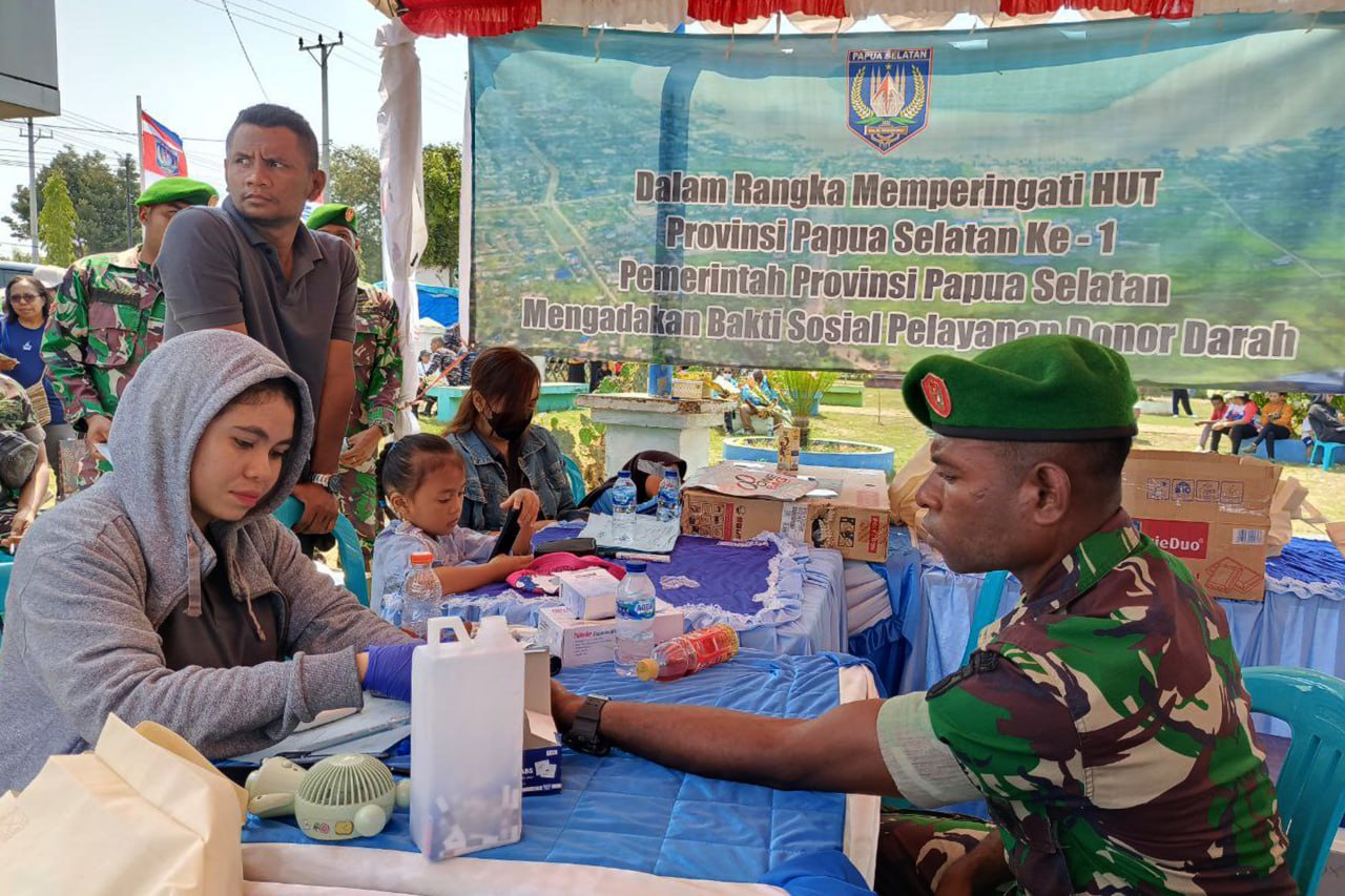 "Pada Hari Ulang Tahun (HUT) Provinsi Papua Selatan Ke-1 ini Kodim 1707/Merauke menghadirkan puluhan personel mengikuti donor darah yang dilaksanakan secara terpusat di Lapangan Mandala Kota Merauke". ungkap Dandim 1707/Merauke.