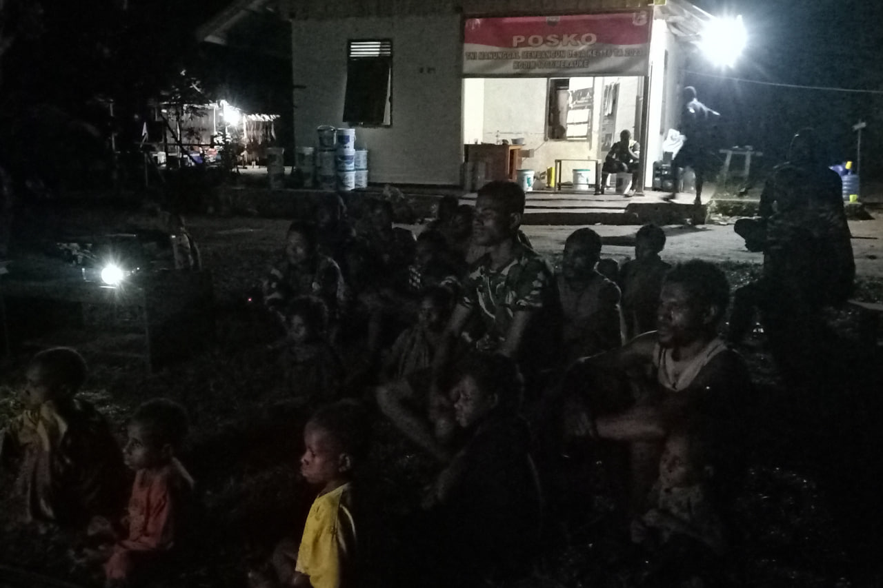 "Pemutaran film setiap malam hari sampai saat ini terus dilakukan oleh personel Satgas TMMD Ke-116 dalam rangka memberikan hiburan kepada masyarakat Kampung Homlikya". ungkap Dandim 1707/Merauke.