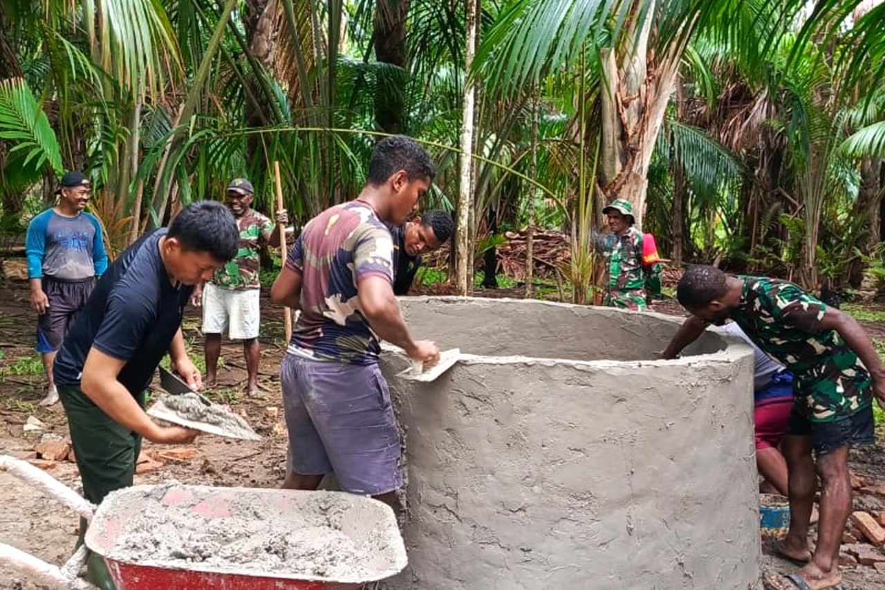 "Penggalian sumur air bersih dilakukan dengan cara manual kemudian dilakukan pemasangan batu bata dan pasir semen yang dibentuk melingkar, dan pengerjaannya dilakukan penuh dengan semangat oleh para personel Satgas TMMD yang dibantu oleh masyarakat Po Epe". ungkap Komandan SSK Lettu Inf Abdullah Latupono.