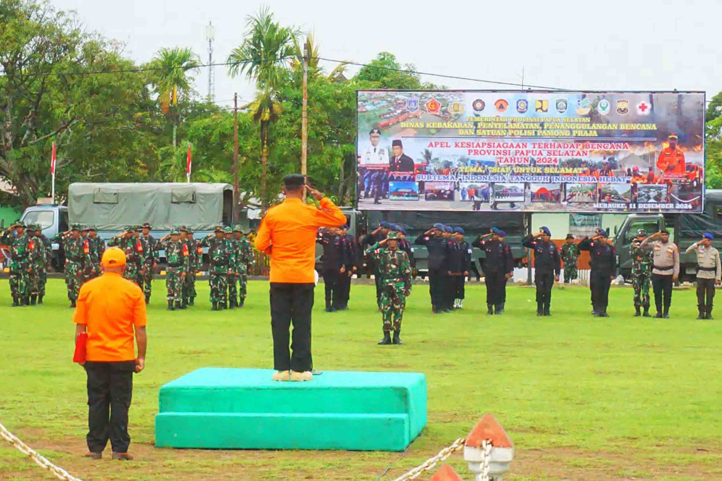 Kegiatan apel gelar pasukan yang dilaksanakan di Lapangan Makodim 1707/Merauke Jln. Raya Mandala Distrik Merauke Kabupaten Merauke - Provinsi Papua Selatan tersebut mengusung Tema "Siap Untuk Selamat" dan Sub Tema "Indonesia Tangguh Indonesia Hebat" dengan dipimpin langsung oleh Kasatpol PP Prov. Papua Selatan Elias Refra yang diikuti sedikitnya 200 personel gabungan dari Pemerintah Daerah, TNI, Polri dan Basarnas.