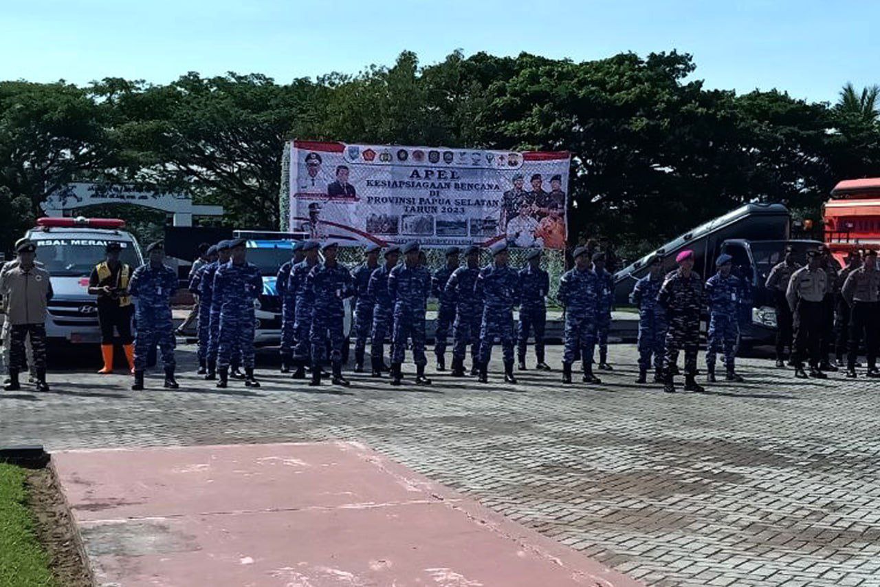 Bertindak sebagai Pembina Apel Pj. Gubernur Provinsi Papua Selatan Prof. Dr. Ir. Apolo Safanpo, ST., MT., Komandan upacara Danyon Marhanlan XI Letkol Mar Daulat Situmorang dan Perwira Upacara Kabid Penanggulangan Bencana dan Kebakaran Satpol PP Lilis Adi Sulistianto yang diikuti oleh ratusan personel yang terdiri dari Gabungan TNI-Polri, Basarnas, Senkom, PMI dan Dinkes Kab. Merauke.