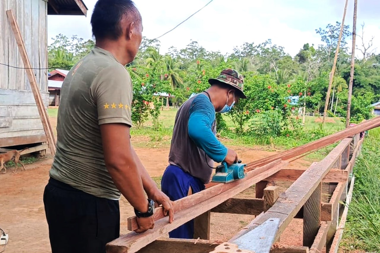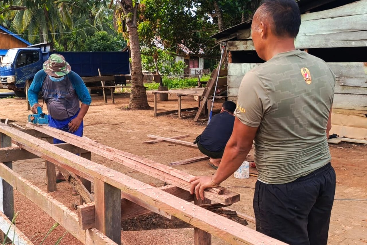 ▴kodim 1707/merauke▴ RANGKA PINTU KAMAR MANDI/WC MULAI DIKERJAKAN PERSONEL SATGAS TMMD KE-119