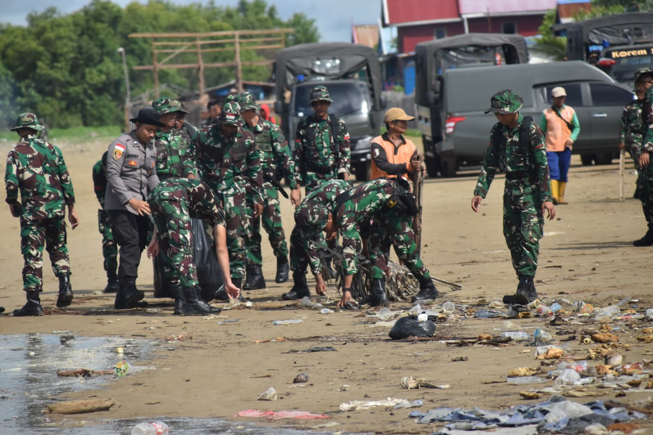 ▴kodim 1707/merauke▴ SAMBUT HARI JUANG TNI AD KE-79, PERSONEL KODIM MERAUKE KARYA BAKTI BERSIHKAN PANTAI DAN PASAR