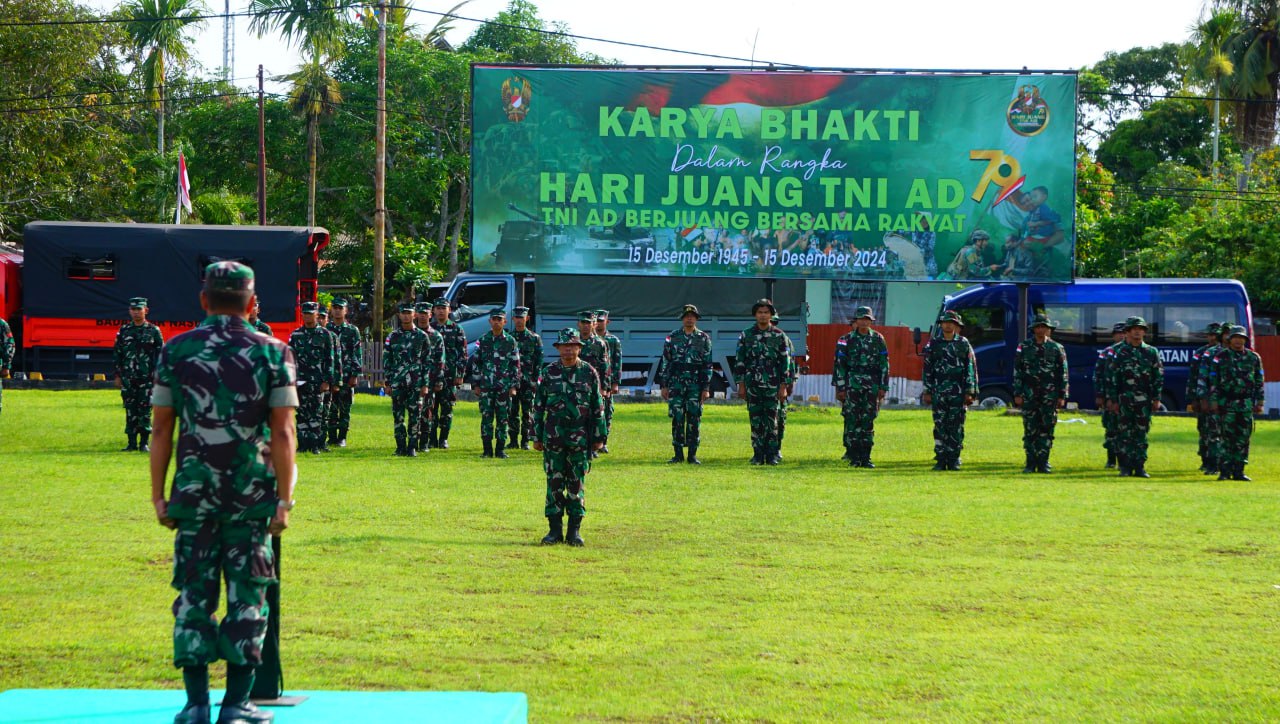 Kepala Staf Korem 174/ATW Kolonel Inf Ahmad Hadi Hariono, M.Han pada saat mengambil Apel Gabungan Karya Bhakti dalam rangka Hari Juang TNI AD Ke-79 Tahun 2024 di Lapangan Kodim 1707/Merauke menyampaikan, Kegiatan Karya Bhakti yang dilakukan tersebut meliputi pembersihan Pasar dan juga pembersihan Pantai, melalui karya bakti diharapkan para unsur masyarakat sekitar ikut berpartisipasi sehingga lingkungan tetap bersih.