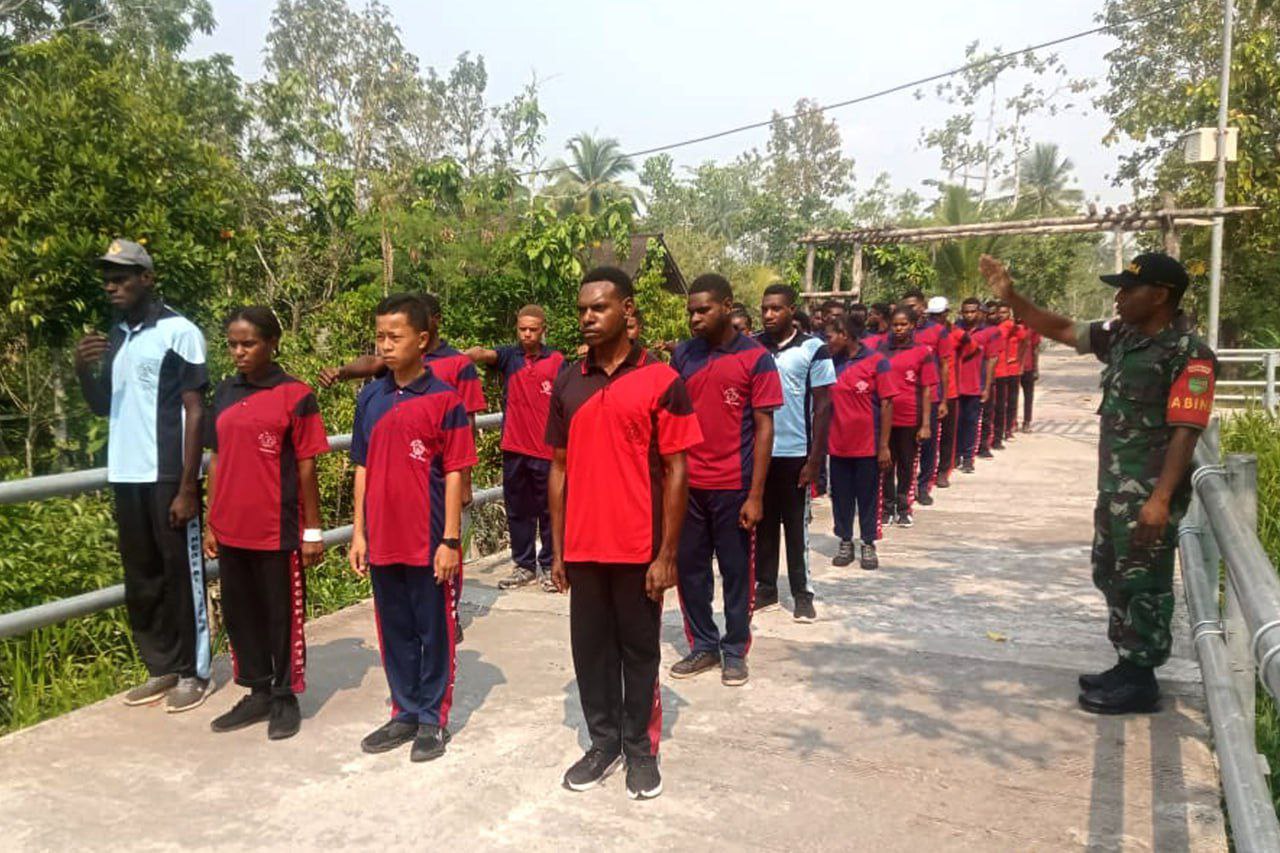 ▴kodim 1707/merauke▴ SAMBUT HARI SUMPAH PEMUDA, BABINSA KORAMIL ATSJ LATIH BARIS BERBARIS SISWA/I SMA