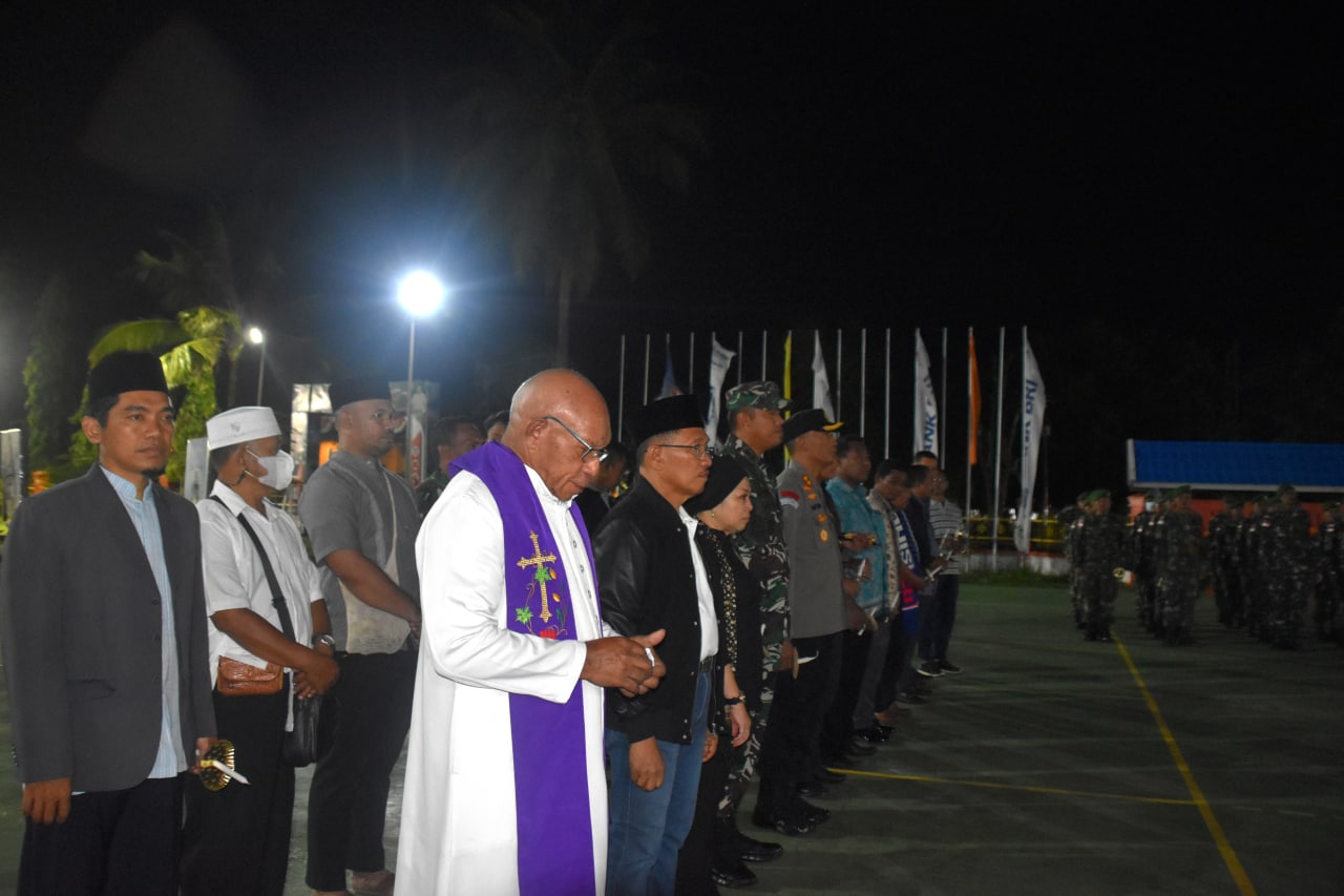 Kegiatan do'a bersama diawali dengan menyanyikan lagu Indonesia Raya dan do'a dipimpin langsung oleh Ibu Batilmurik selaku Pendeta Gereja Emanuel Kodim 1707/Merauke, kemudian dilanjutkan dengan penyalaan lilin bersama dan pembacaan narasi oleh Sekretaris Askab/Kadistrik Merauke Rudolf Arnol, S.STP serta tabur bunga secara simbolis oleh Dandim 1707/Merauke Letkol Inf Bayu Kriswandito, S.Hub., Int. yang diikuti oleh para pejabat yang hadir.