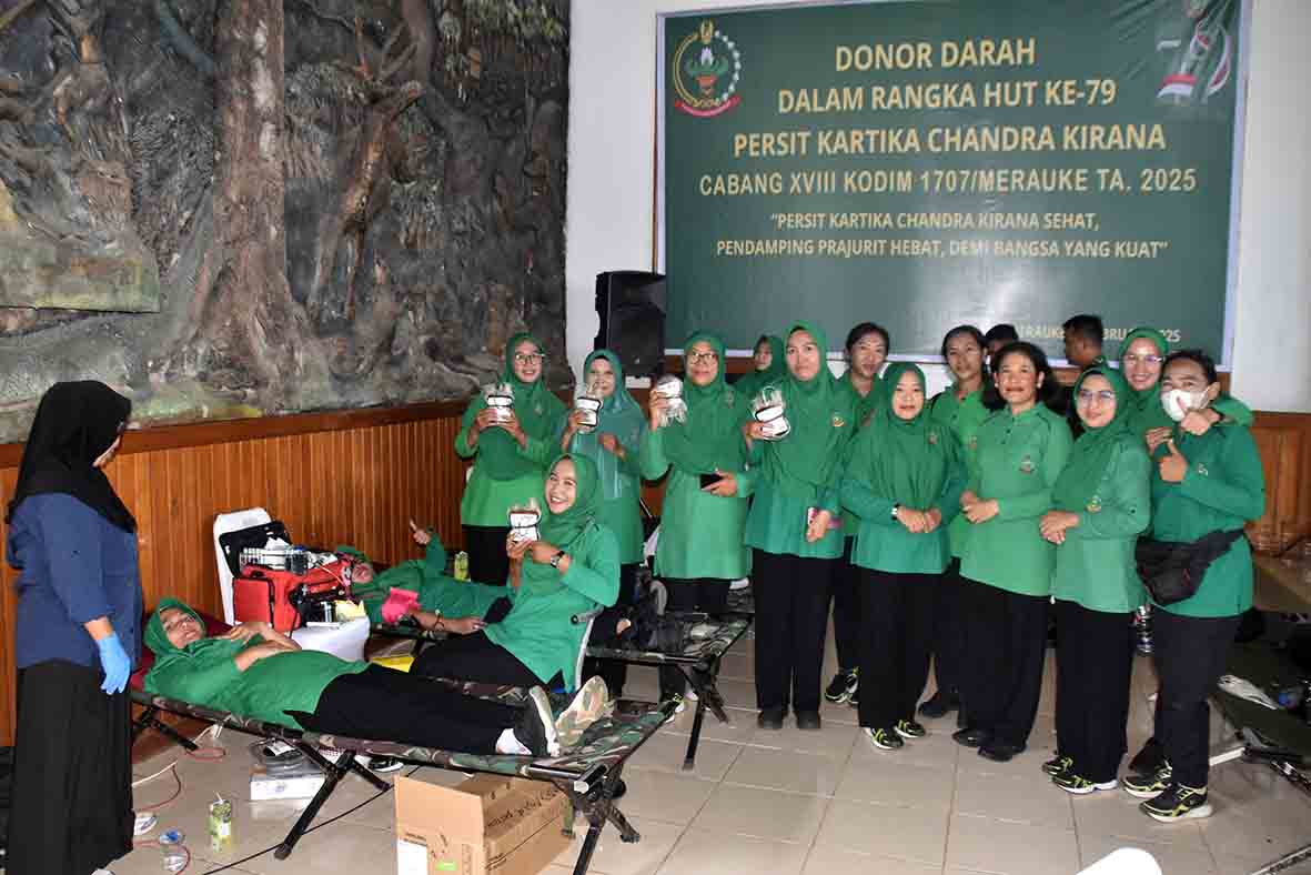 Pengurus Persit KCK Cabang XVIII Kodim 1707/Merauke Ny. Surian mengatakan, kegiatan donor darah tersebut dalam rangka HUT Ke-79 Persit Kartika Chandra Kirana dan HUT Ke-61 Dharma Pertiwi Daerah H Tahun 2025 dengan mengusung tema "Persit Kartika Candra Kirana Sehat, Pendamping Prajurit Hebat, Demi Bangsa Yang Kuat".