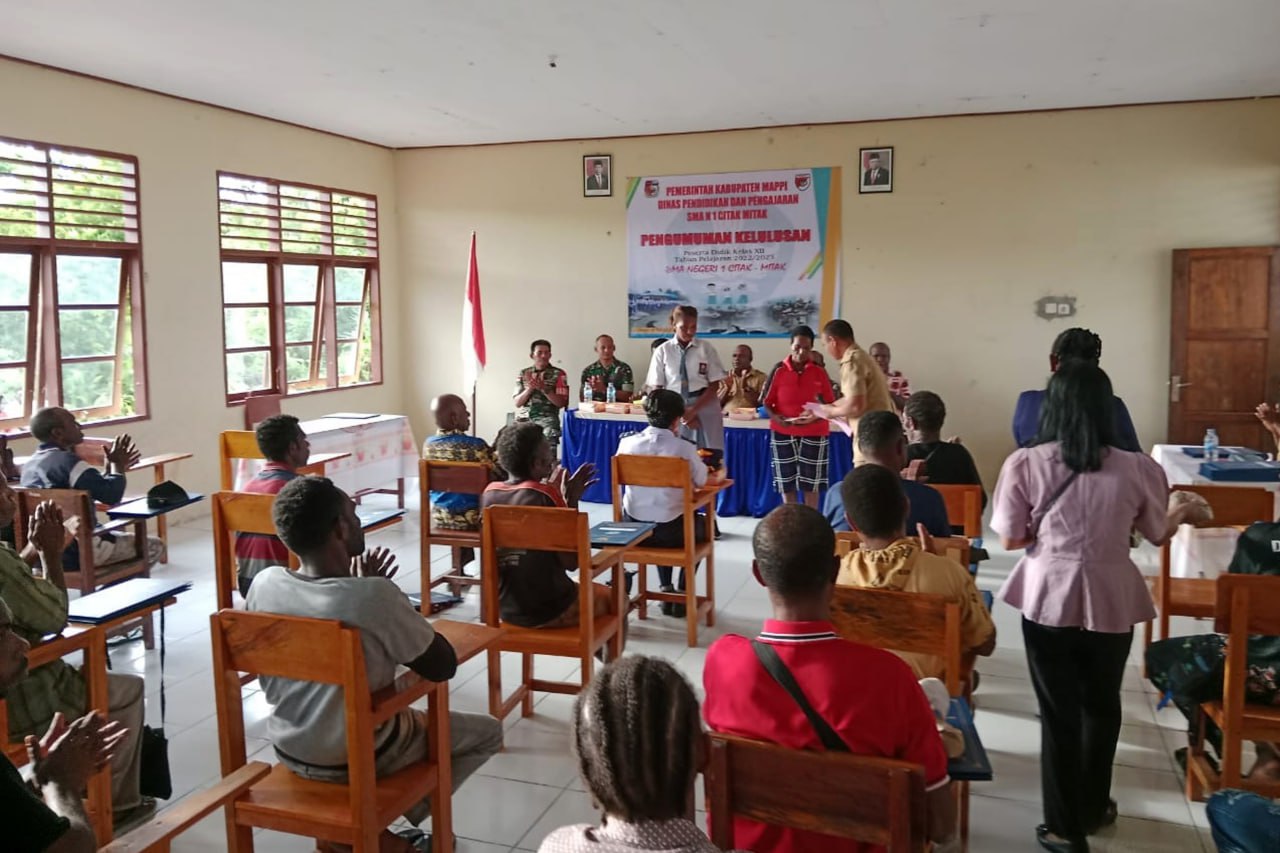 Hal tersebut disampaikan langsung oleh Babinsa Koramil 1707-14/Senggo Kodim 1707/Merauke Sertu Sumardin saat menghadiri kegiatan pengumuman kelulusan peserta didik Kelas XII Tahun Pelajaran 2022/2023 SMA Negeri 1 Citak Mitak bertempat di Sekolah SMA Negeri 1 Citak Mitak Kabupaten Mappi - Papua Selatan beberapa hari lalu.