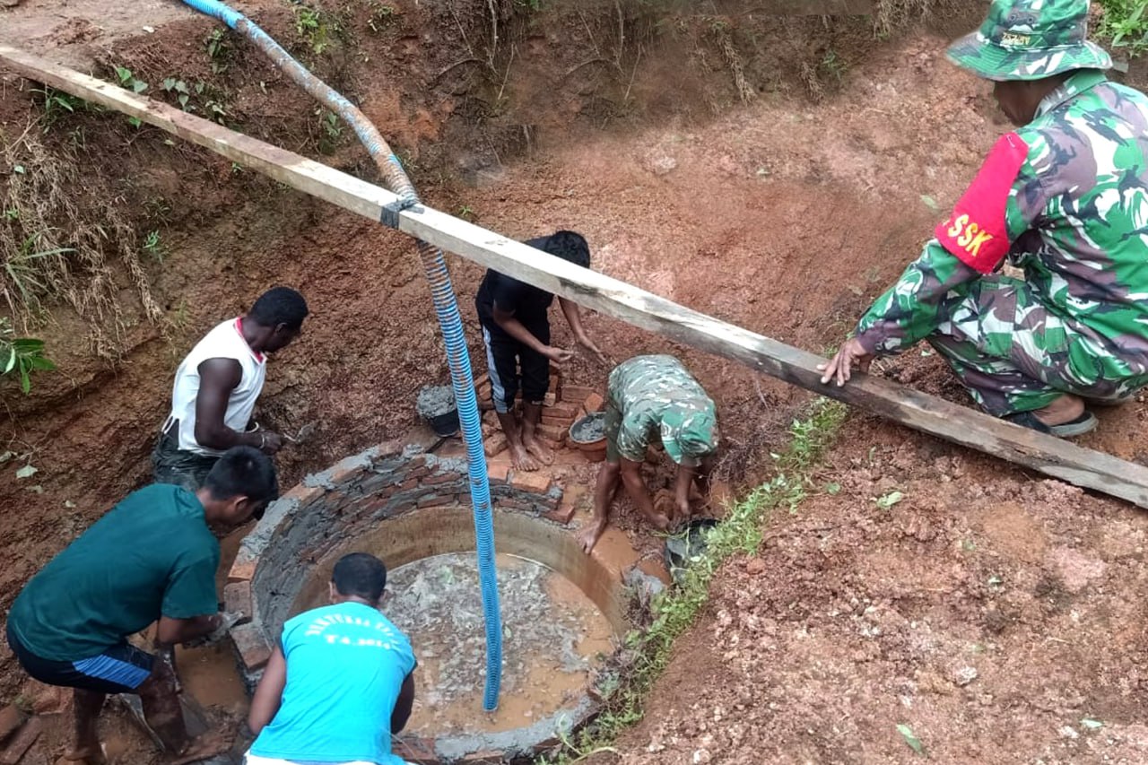 Setelah beberapa unit bangunan kamar mandi/wc selesai dikerjakan oleh personel Satgas TMMD Ke-119 Kodim 1707/Merauke, kini beberapa personel mengerjakan sumur air bersih untuk masyarakat Kampung Po Epe Distrik Ngguti Kabupaten Merauke - Papua Selatan.