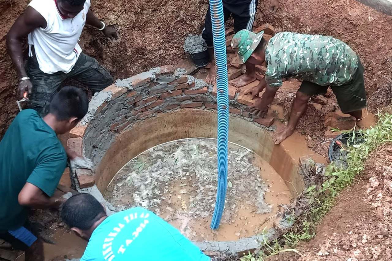 Komandan SSK Satgas TMMD Ke-119 Kodim 1707/Merauke Lettu Inf Abdullah Latupono, S.Sos saat mendampingi jalannya pembangunan sumur air bersih untuk masyarakat Kampung Po Epe tersebut menyampaikan bahwa pembangunan sumur air bersih merupakan salah satu kegiatan fisik Program TMMD Ke-119 Kodim 1707/Merauke yang mana kegiatan fisik seluruhnya yaitu pembangunan 20 unit kamar mandi/wc dan 4 unit sumur air bersih.