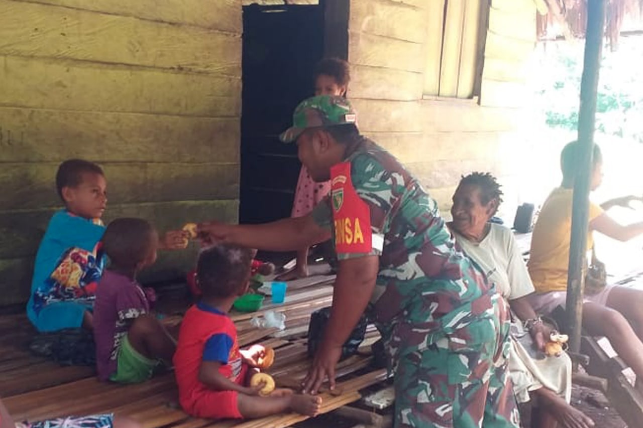 "Kedatangan saya dirumah Mama Maria Kaibu tersebut selain menanyakan tentang kondisi kesehatan bersama keluarganya juga membagikan makanan ringan kepada anak-anak dengan harapan kita selaku Babinsa juga bisa dekat dengan mereka". ungkap Babinsa Koptu Pulyono.