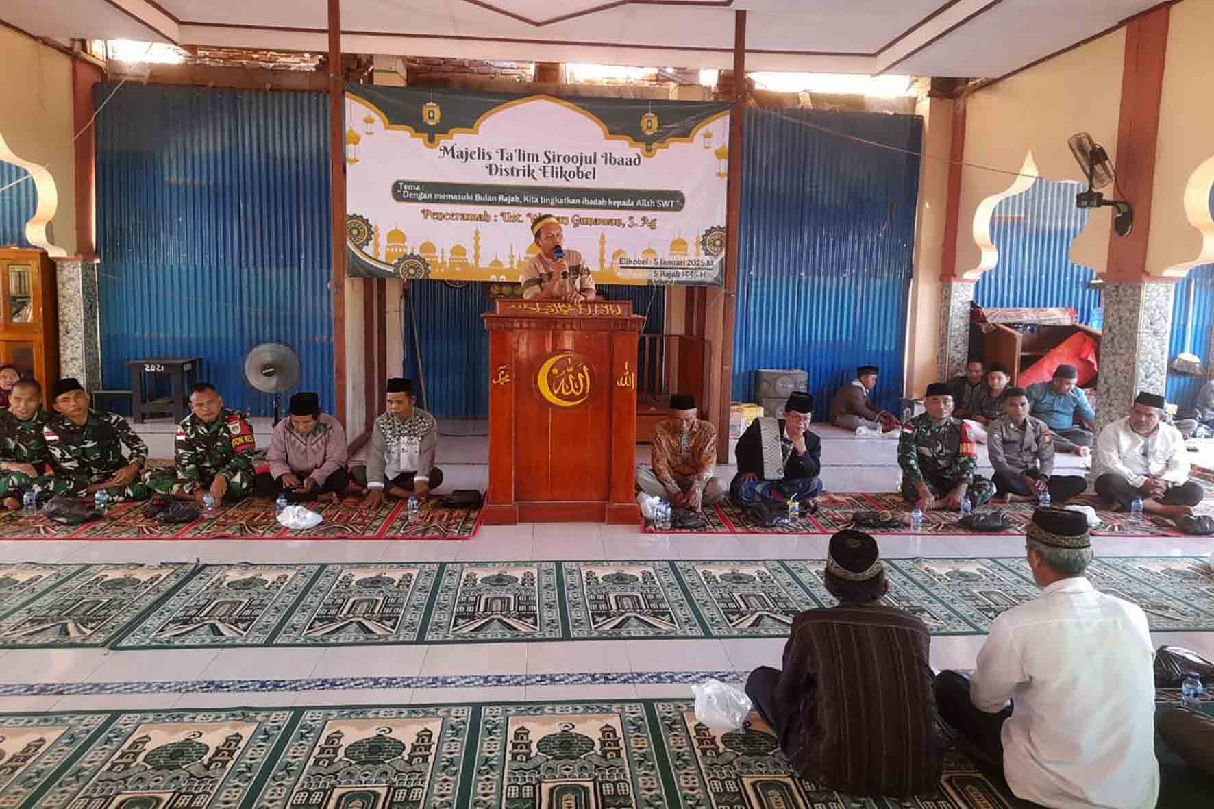 Sebagai upaya dalam meningkatkan keimanan dan ketaqwaan kepada Tuhan Yang Maha Esa, Babinsa Koramil 1707-07/Elikobel Kodim 1707/Merauke Sertu La Rahi menghadiri Pengajian Akbar Majelis Ta'lim Siroojul Ibaad bertempat di Masjid Al Huda Kampung Sipias Distrik Elikobel Kabupaten Merauke - Provinsi Papua Selatan. Minggu (5/1/2025).