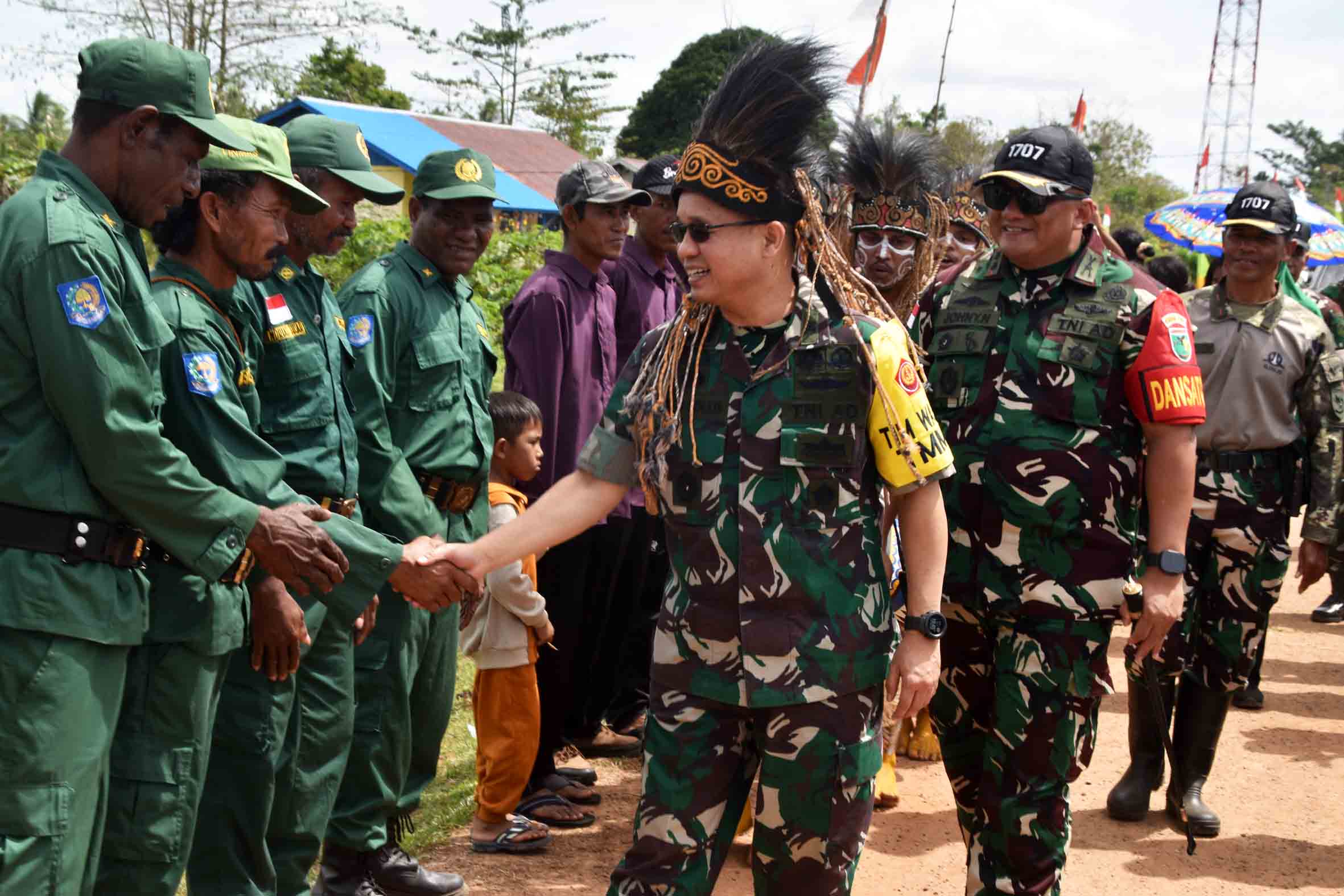 Kedatangan rombongan disambut tarian adat senyum tulus warga. Para tokoh agama, tokoh adat, dan masyarakat. TMMD Ke-125 mengusung tema “Dengan Semangat TMMD Mewujudkan Pemerataan Pembangunan dan Ketahanan Nasional di Wilayah”.