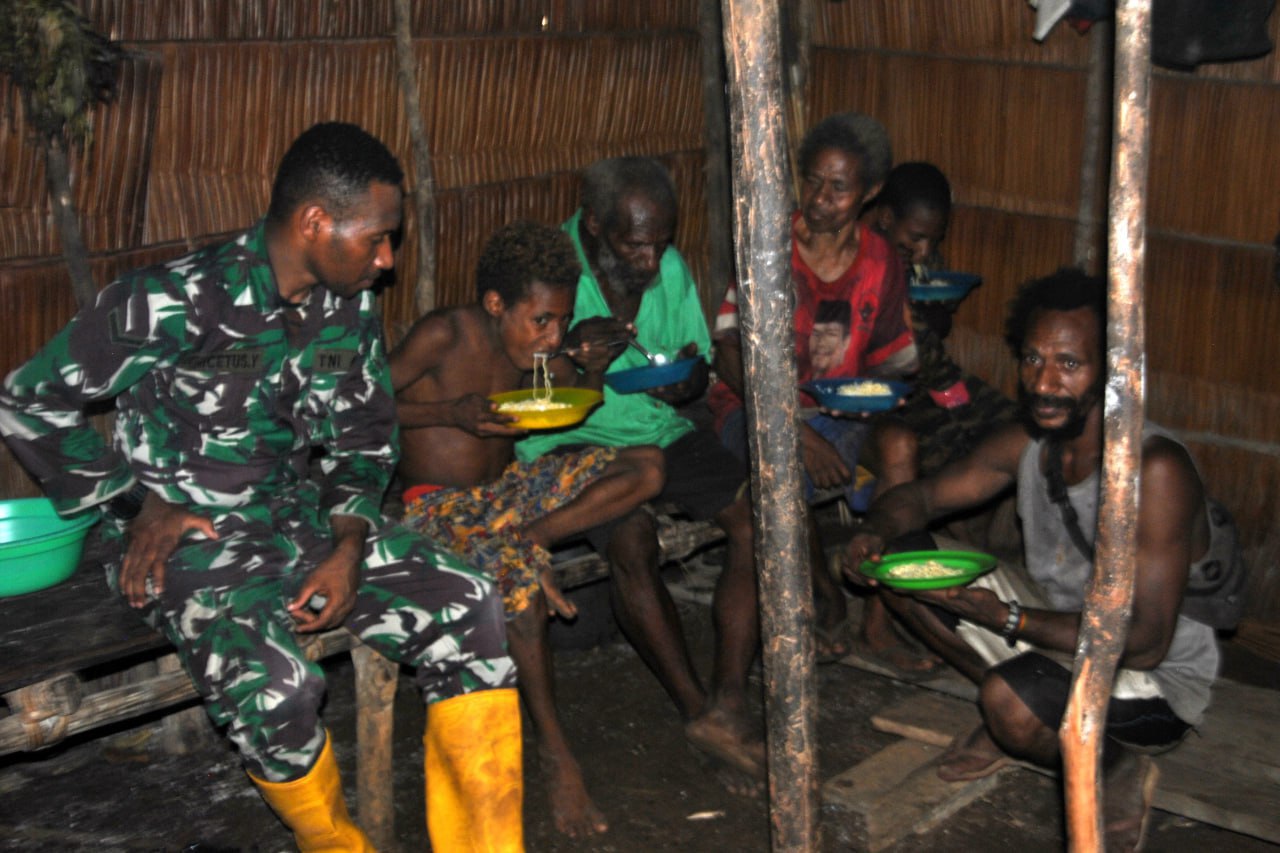 Suasana kebersamaan dan keakraban yang terlihat, menunjukkan bahwa sinergitas TNI dan Rakyat sangat baik sebagai wujud Kemanunggalan TNI dan Rakyat. (Kodim 1707)