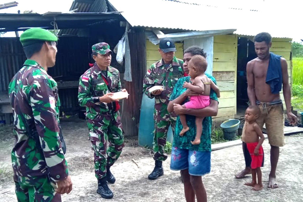 ▴kodim 1707/merauke▴ TURUNKAN ANGKA STUNTING, BABINSA KORAMIL KIMAAM BERI PMT KEPADA ANAK-ANAK KIWORO
