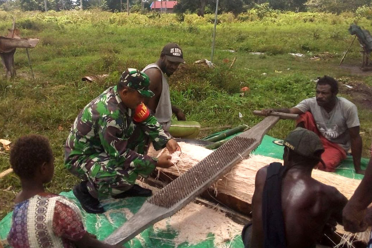 Disela-sela kegiatan Bapak Libertus Kaimuidi mengucapkan terimakasih banyak kepada Babinsa Pos Ramil Kurik Kodim Merauke yang telah datang kerumahnya dan membantunya memangkur sagu sehingga pekerjaan untuk mendapatkan sagu menjadi lebih ringan.