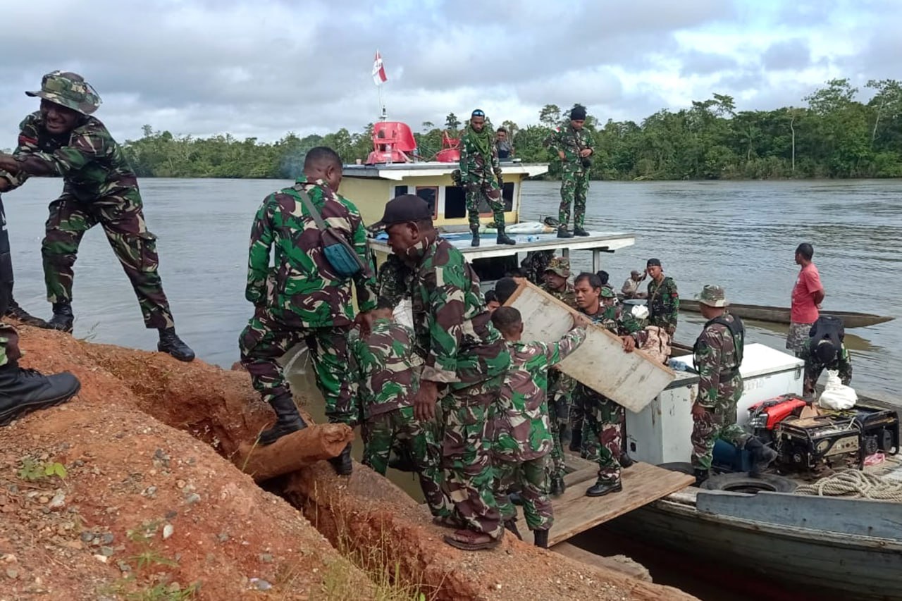 "Setelah bermalam selama satu hari di Koramil 1707-11/Bade Distrik Edera Kab. Mappi, personel Satgas TMMD melanjutkan perjalanan melalui jalur air (sungai digoel) menuju Distrik Asiki wilayah Kab. Boven Digoel dengan menggunakan Kapal". ungkap Lettu Inf Ismanuel Tare.