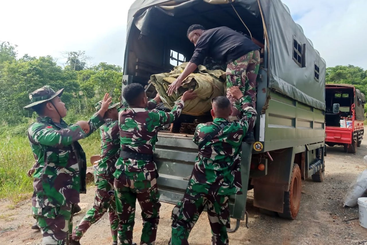 Setelah selesai membangun 15 unit rumah masyarakat layak huni type 36 melalui Program TMMD Ke-116 Kodim 1707/Merauke di Kampung Homlikya Distrik Syahcame Kabupaten Mappi, puluhan personel Satgas TMMD Ke-116 Kodim 1707/Merauke bertolak dari Kab. Mappi menuju Kabupaten Merauke - Papua Selatan. Sabtu (10/6/2023).