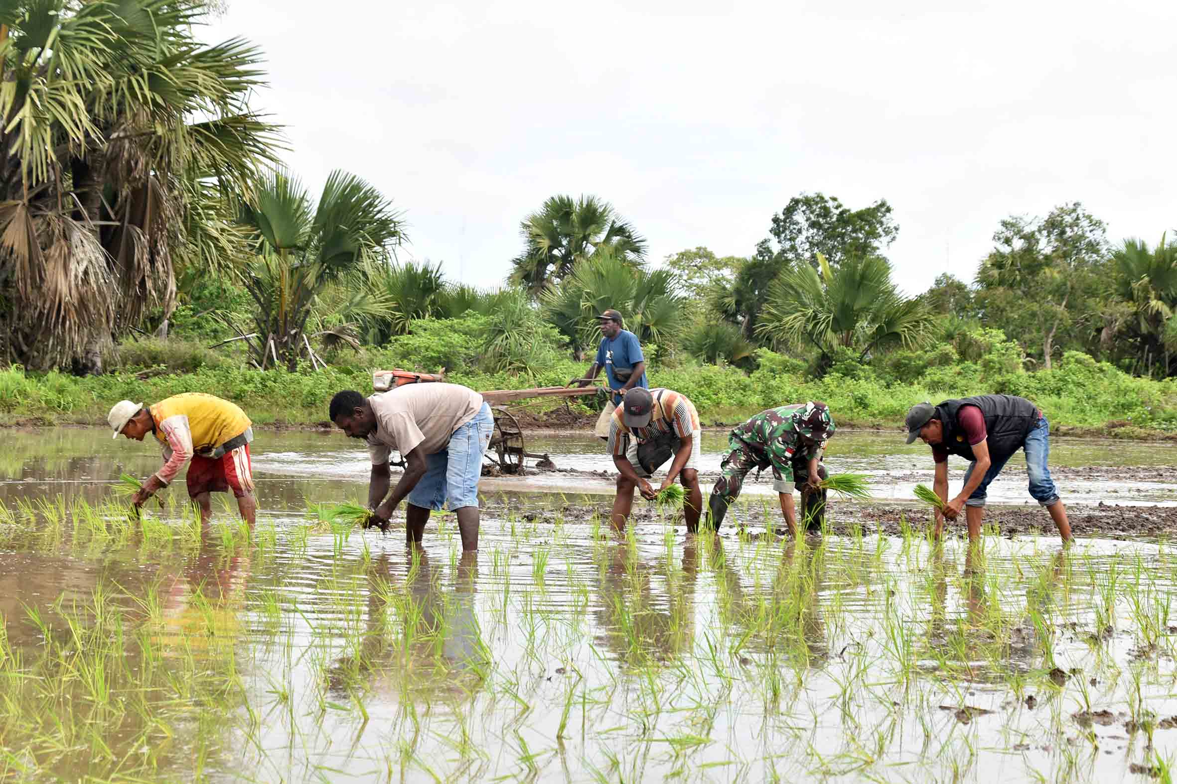"Saat ini di Kabupaten Merauke sudah memasuki musim penghujan jadi para petani mulai sibuk menanam padi, untuk itu para Babinsa Koramil 1707-02/Merauke terjun langsung kesawah sesuai wilayah masing-masing membantu menanam padi, kegiatan tersebut tentunya dapat meringankan beban para petani". ungkap Mayor Inf La Haruni.