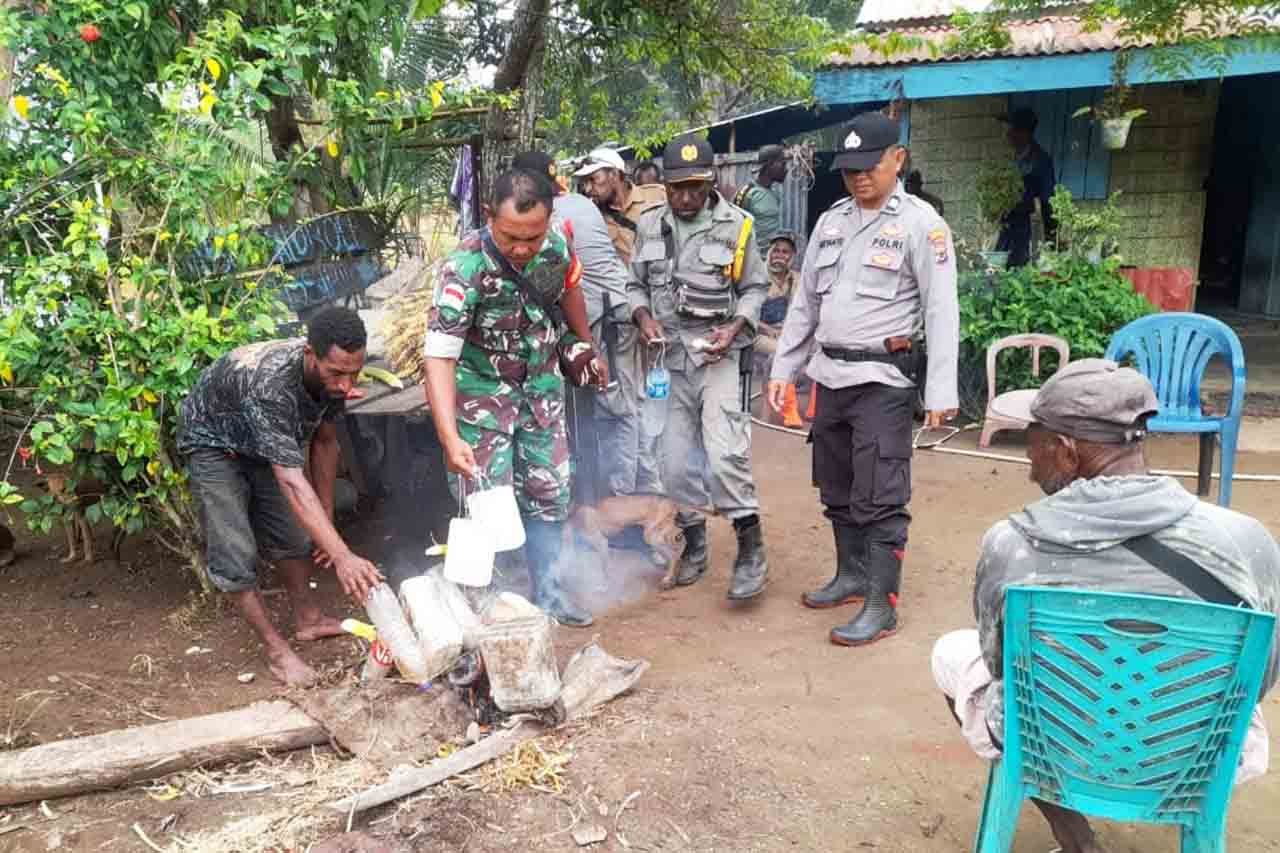Dandim 1707/Merauke Letkol Inf Bayu Kriswandito, S.Hub. Int., M.H.I. melalui WS. Danramil 1707-03/Okaba Pelda Bahrun Rajab menyampaikan kegiatan sweeping miras lokal jenis sagero (terbuat dari air bunga kelapa) dilaksanakan sebagai upaya meminimalisir peredaran miras dalam rangka mewujudkan wilayah yang aman dan tentram.