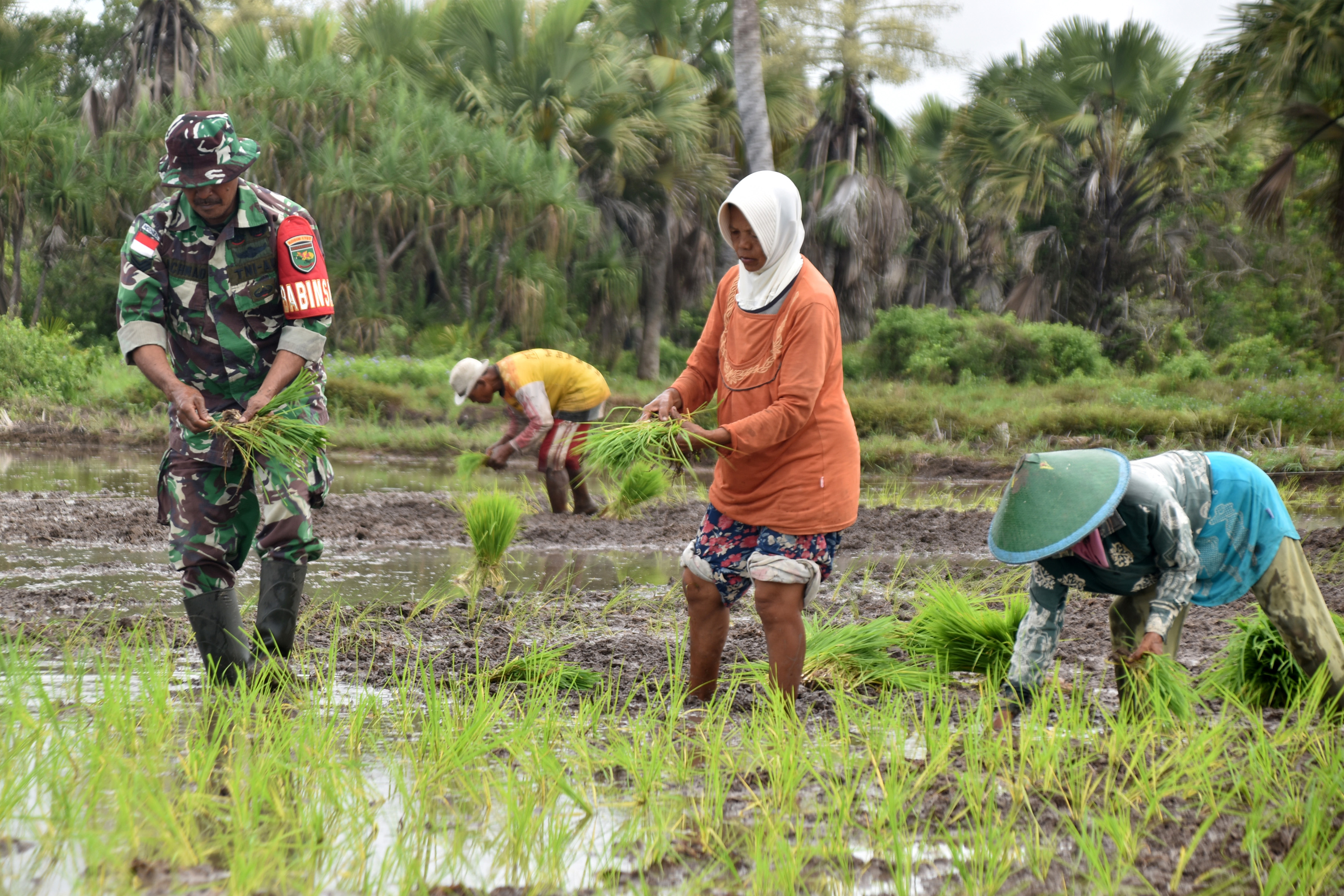 WUJUDKAN SWASEMABADA PANGAN, BABINSA MERAUKE BANTU PETANI KAMPUNG KUPER TANAM PADI