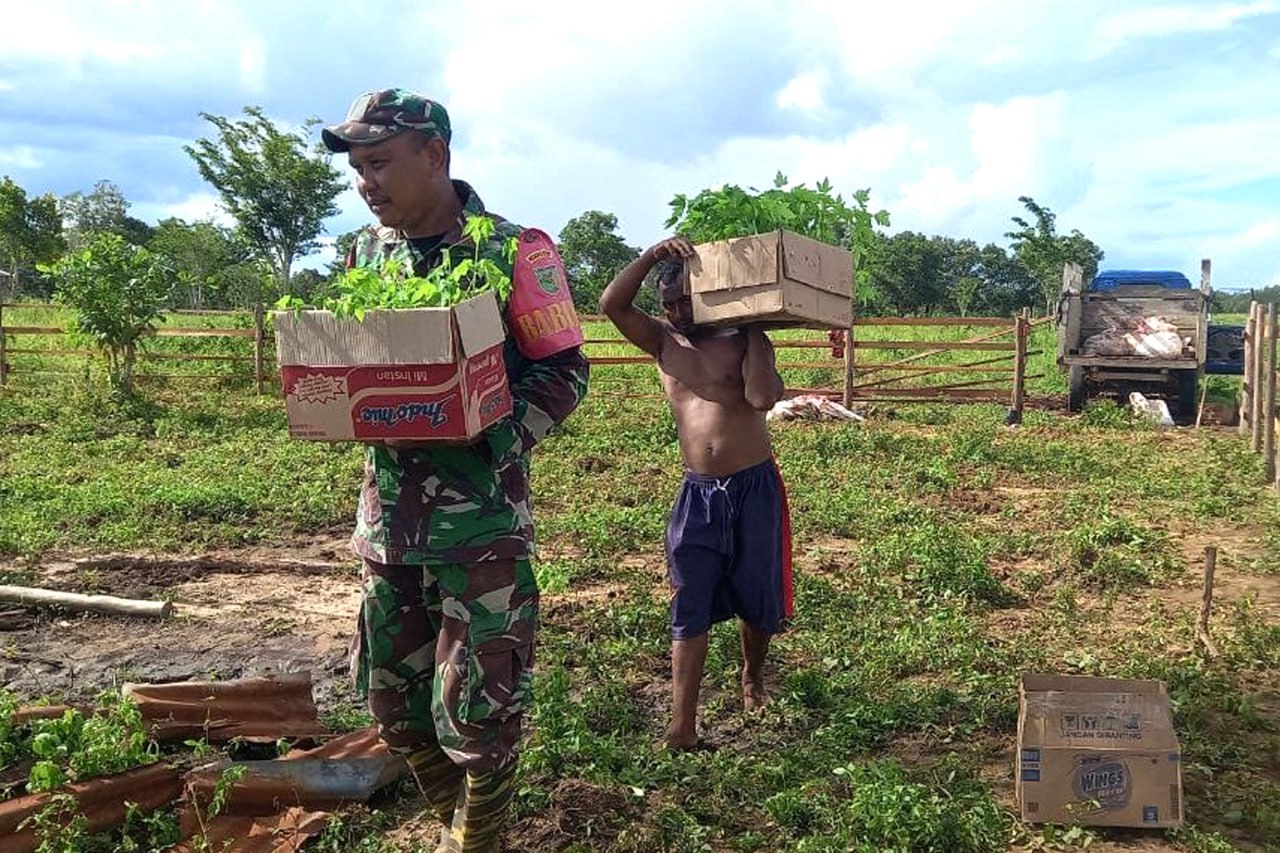 TINGKATKAN EKONOMI, BABINSA POS RAMIL JAGEBOB BANTU PETANI TANAM BIBIT PEPAYA