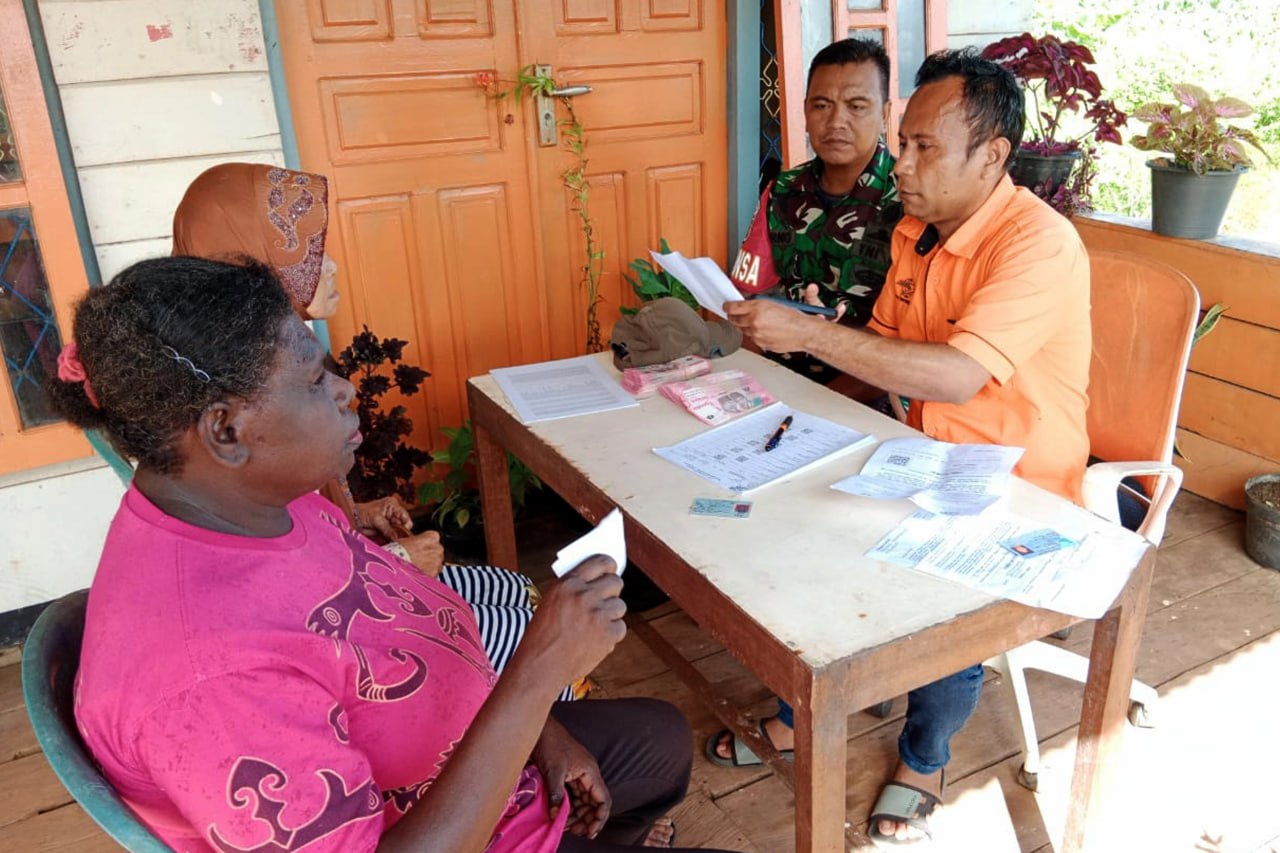 Babinsa Koramil 1707-06/Sota Kodim 1707/Merauke Serda Harno melaksanakan pendampingan kepada masyarakat Kampung Sota Distrik Sota Kabupaten Merauke - Papua Selatan dalam menerima Bantuan Sosial (Bansos) dari Kemensos RI . . . 0