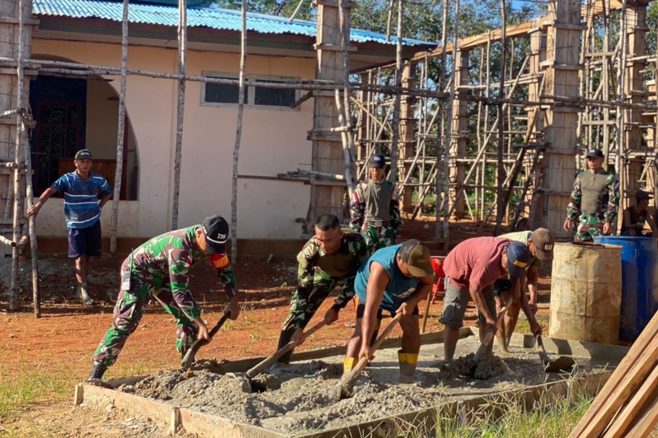 BABINSA ELIKOBEL BERSAMA PERSONEL SATGAS DAN MASYARAKAT KERJA BHAKTI PENGECORAN TIANG MASJID
