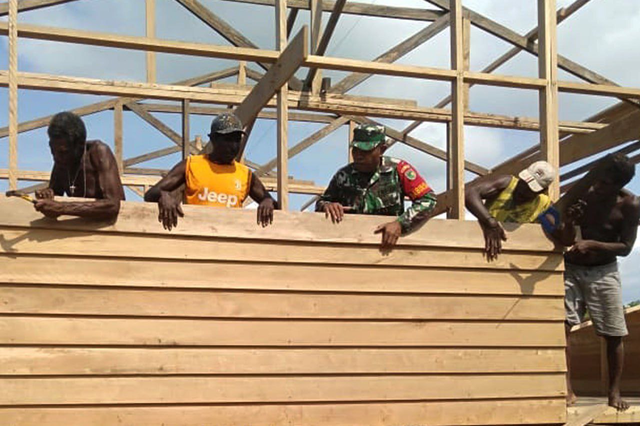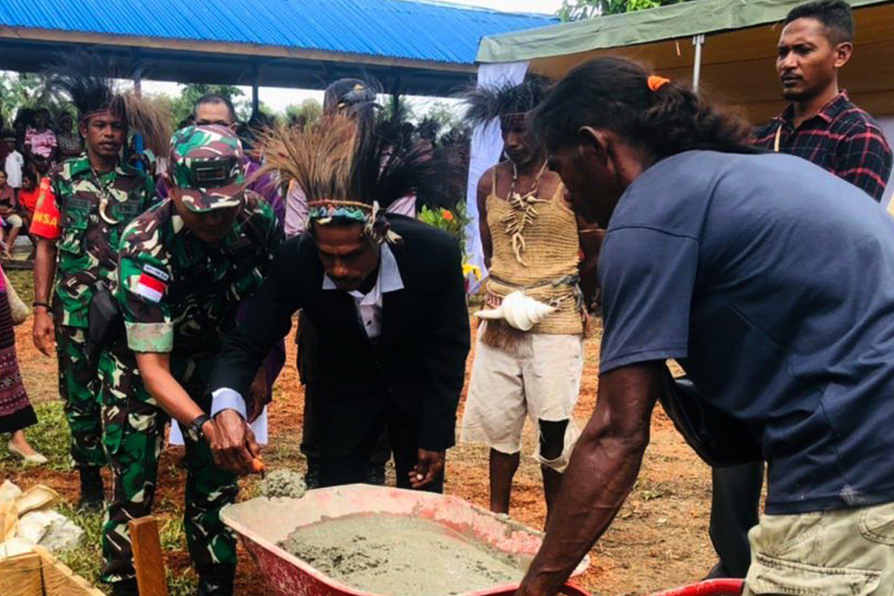 Babinsa Koramil 1707-17/Elikobel Kodim 1707/Merauke Serda Larahi bersama personel Satgas Pamtas Yonif 726/TML dan Masyarakat Kampung Sipias melaksanakan kerja bhakti pengecoran tiang Masjid Nurul Huda Kampung Sipias . . . 0