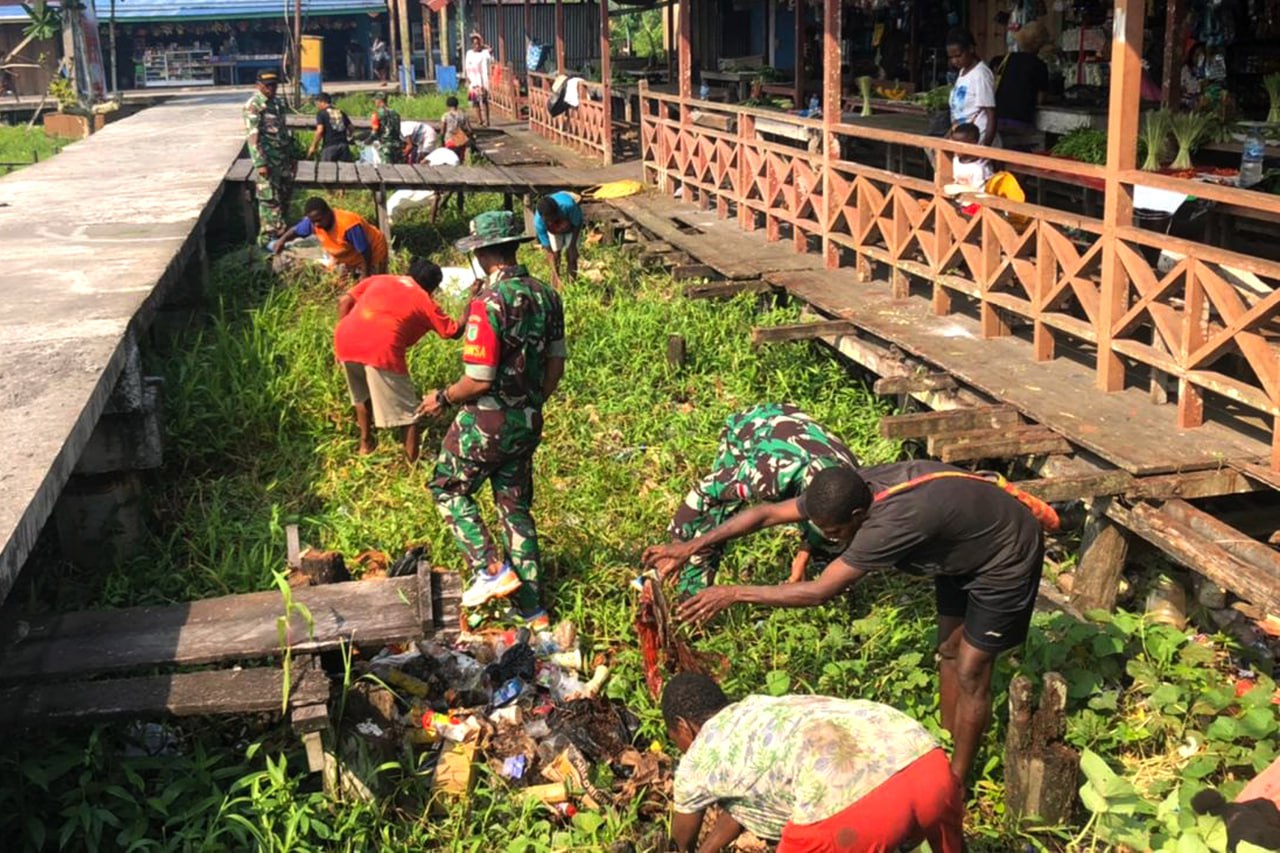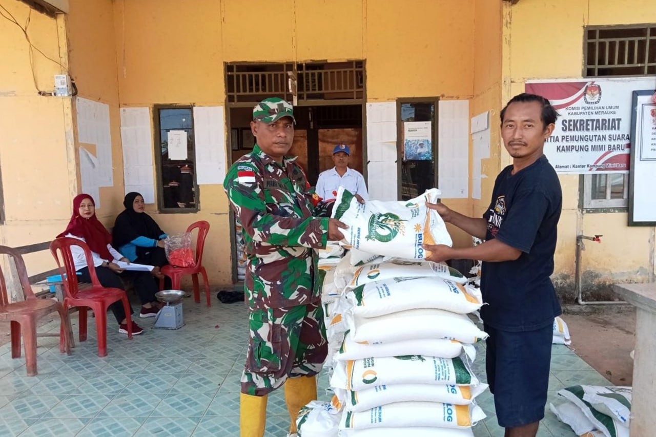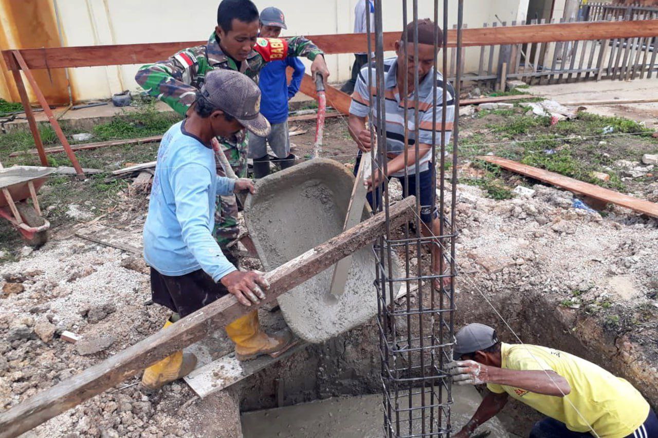 Babinsa Koramil 1707-06/Okaba Kodim 1707/Merauke Sertu Irsam Maming bersama Masyarakat Kampung Okaba Distrik Okaba Kabupaten Merauke - Papua Selatan melaksanakan kerja bhakti pengecoran jalan Kampung Okaba. Komandan . . . 0