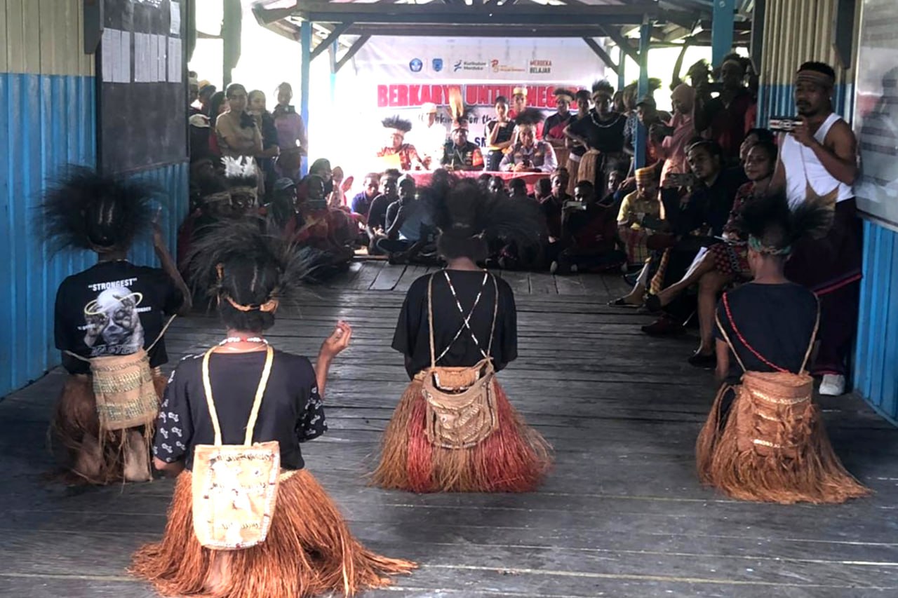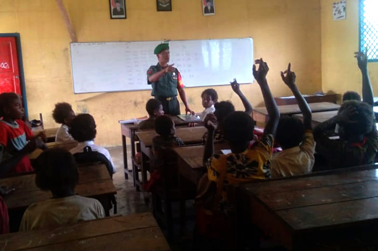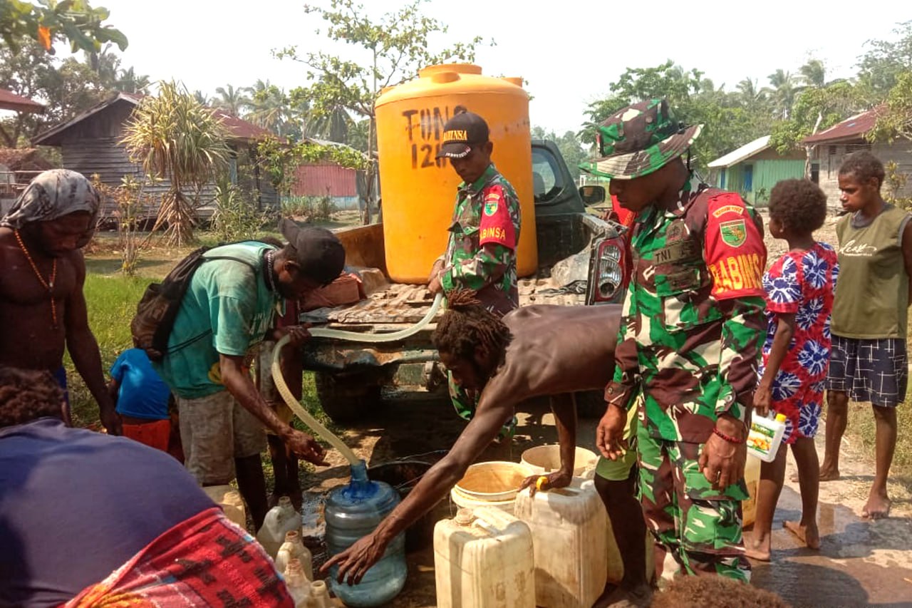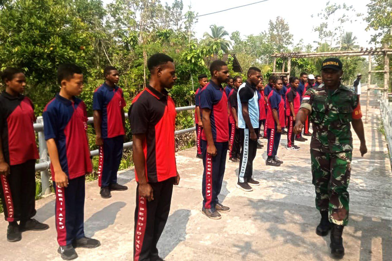 Babinsa Koramil 1707-06/Okaba Kodim 1707/Merauke Sertu Irsam Maming bersama Masyarakat Kampung Okaba Distrik Okaba Kabupaten Merauke - Papua Selatan melaksanakan kerja bhakti pengecoran jalan Kampung Okaba. Komandan . . . 0