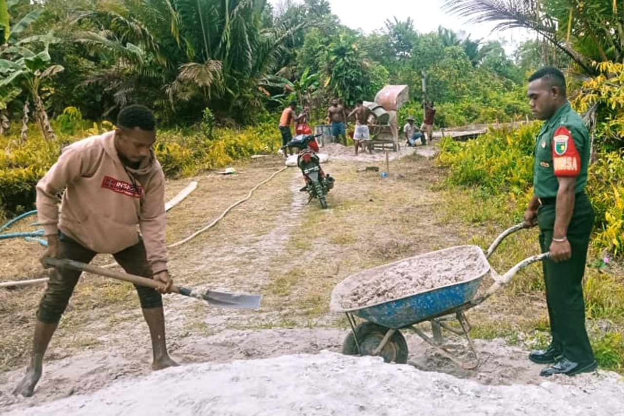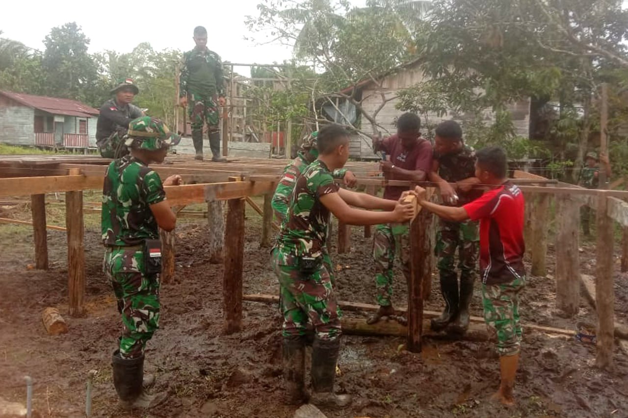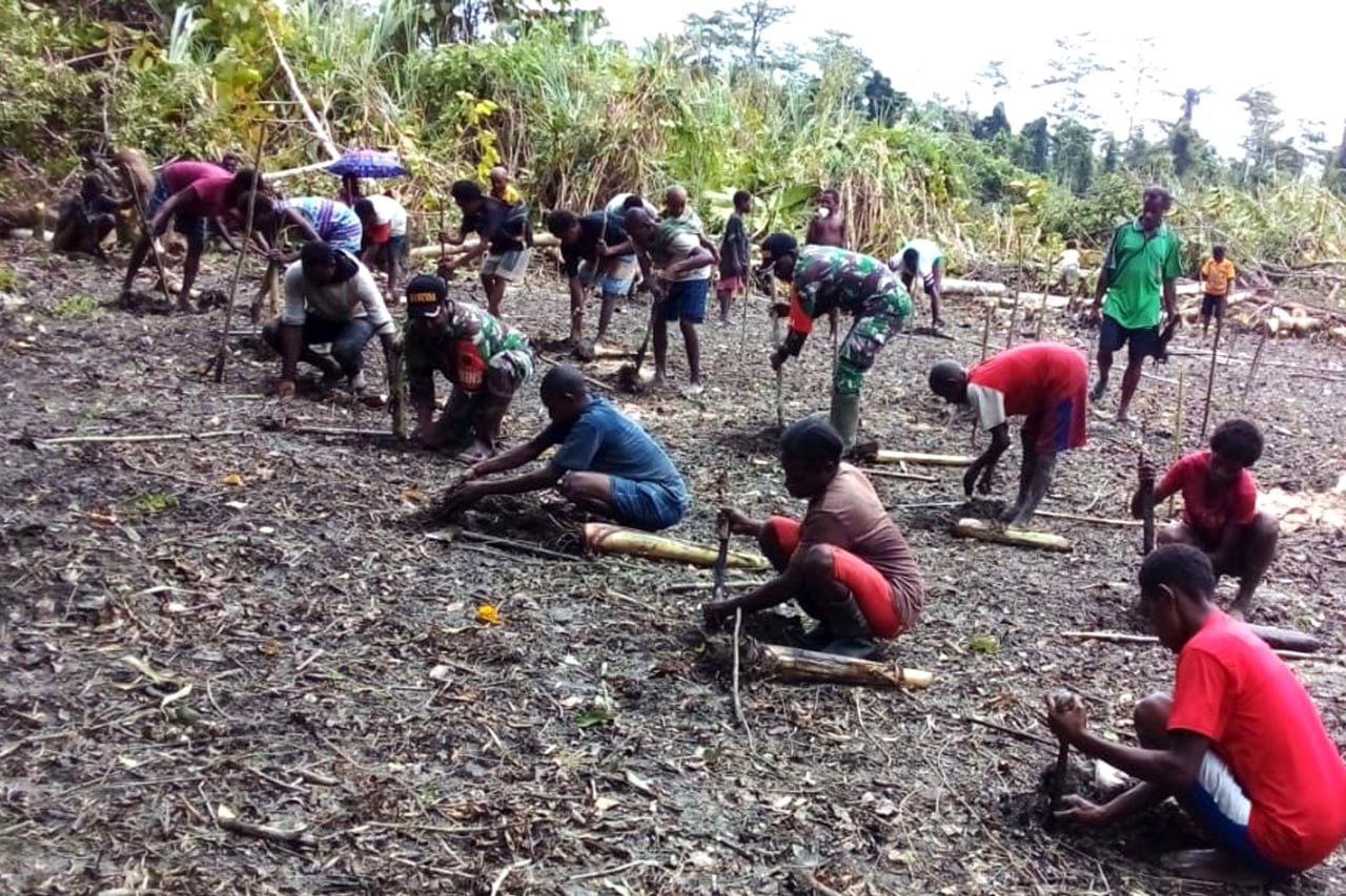 Babinsa Koramil 1707-05/Merauke Kodim 1707/Merauke Sertu Muhamad Arif membantu keluarga Bapak Slamet Riyadi yang merupakan salah satu petani Kampung Candra Jaya Distrik Kurik Kabupaten Merauke - Papua Selatan dalam . . . 0