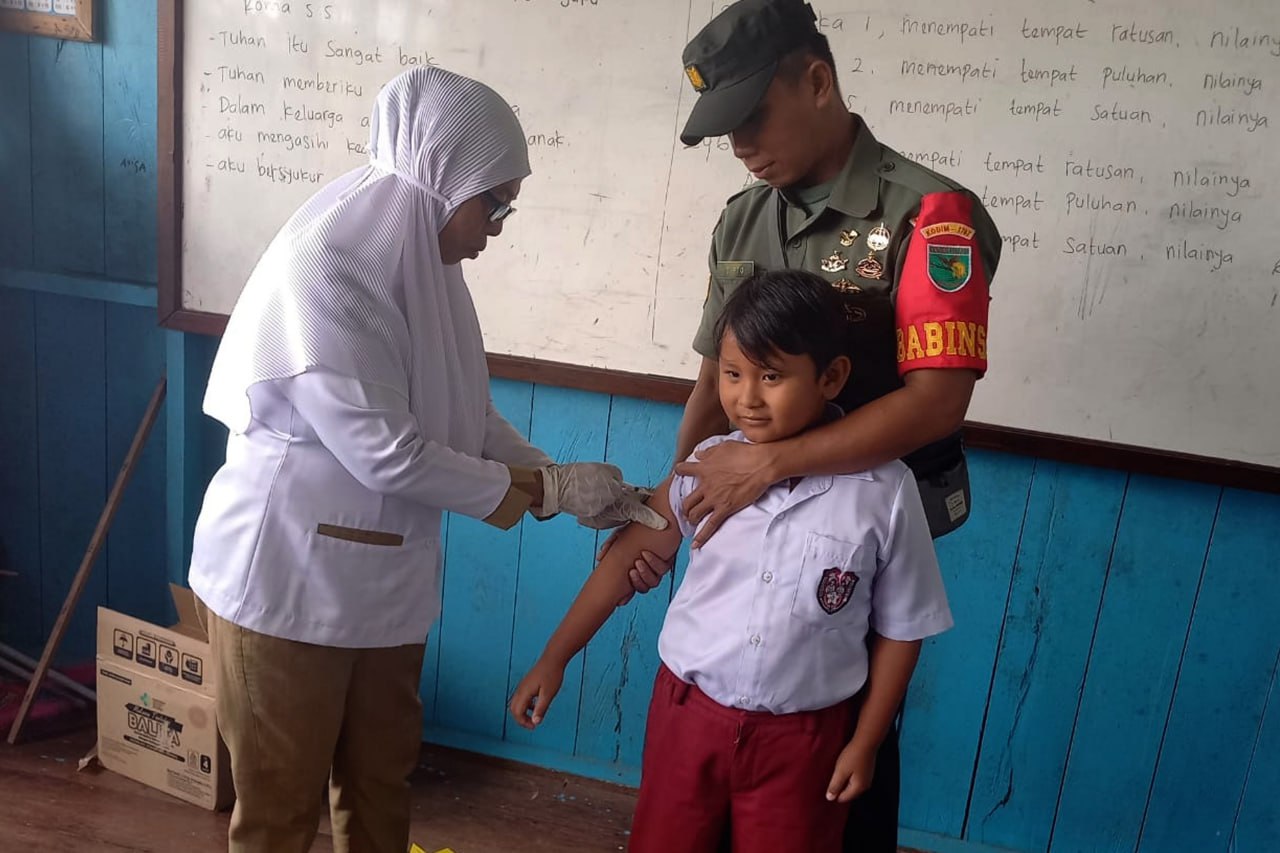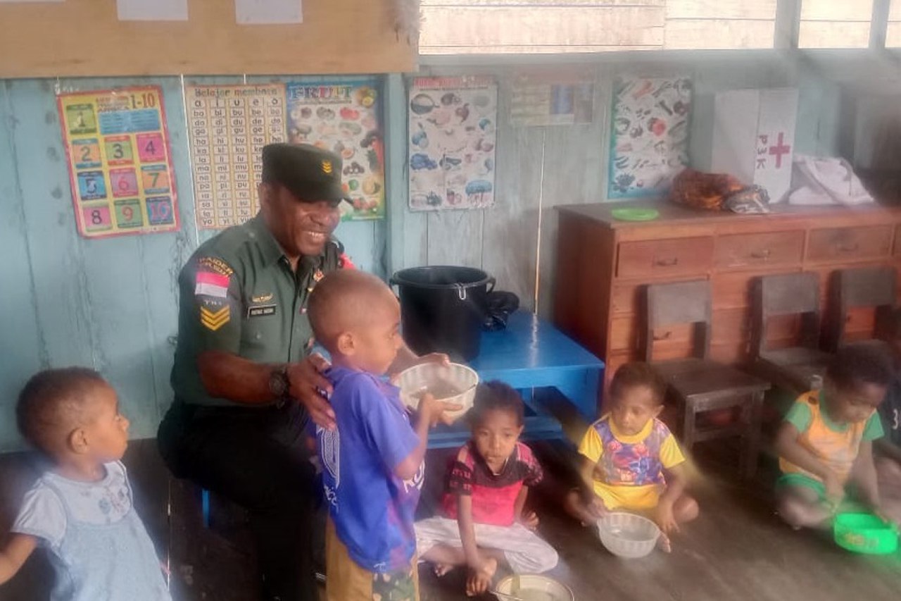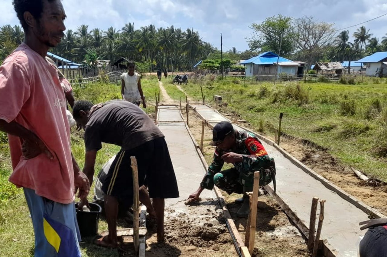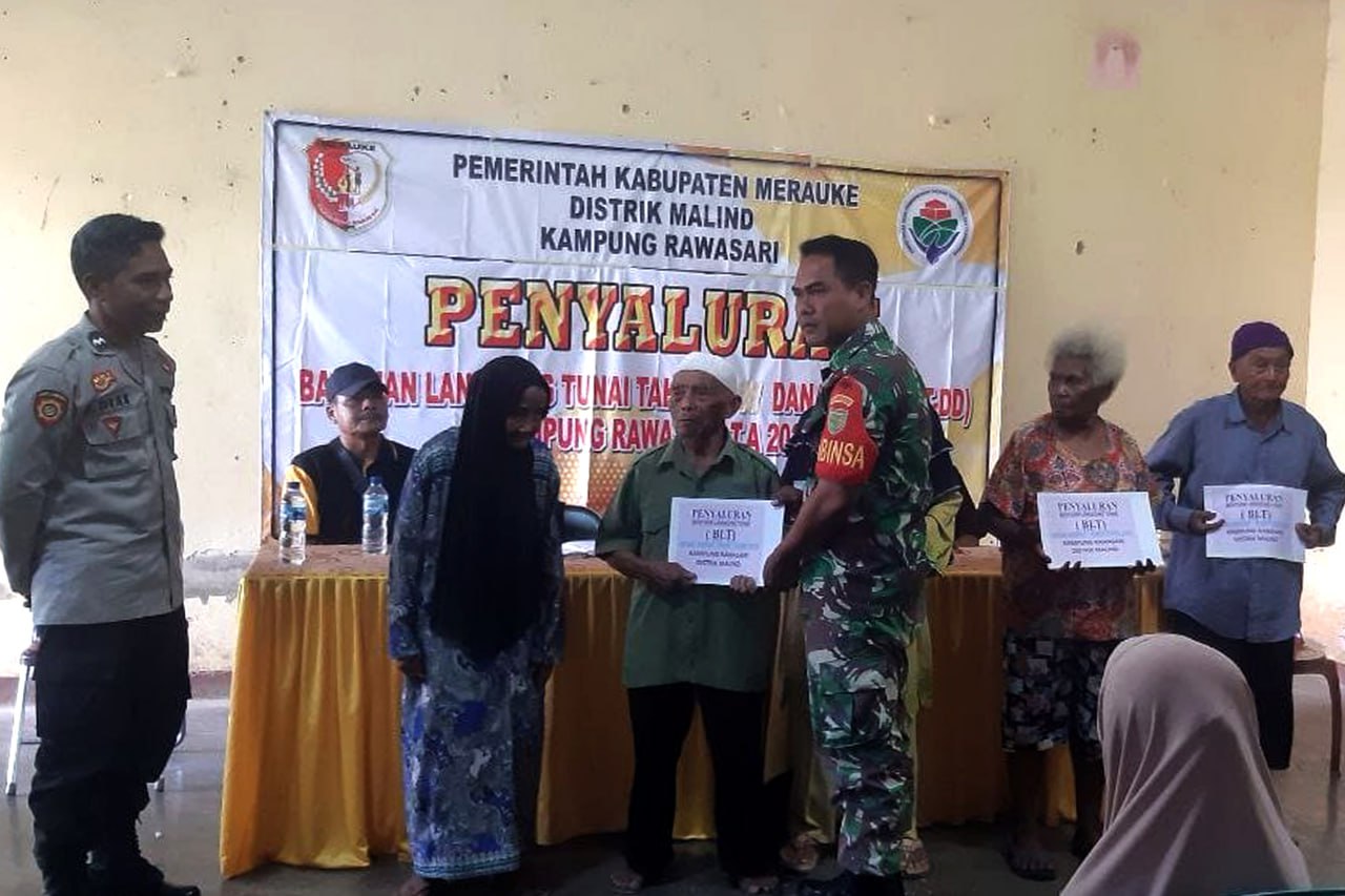 Babinsa Koramil 1707-05/Merauke Kodim 1707/Merauke Sertu Muhamad Arif membantu keluarga Bapak Slamet Riyadi yang merupakan salah satu petani Kampung Candra Jaya Distrik Kurik Kabupaten Merauke - Papua Selatan dalam . . . 0