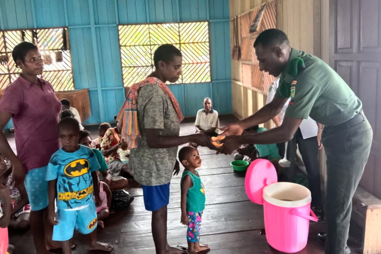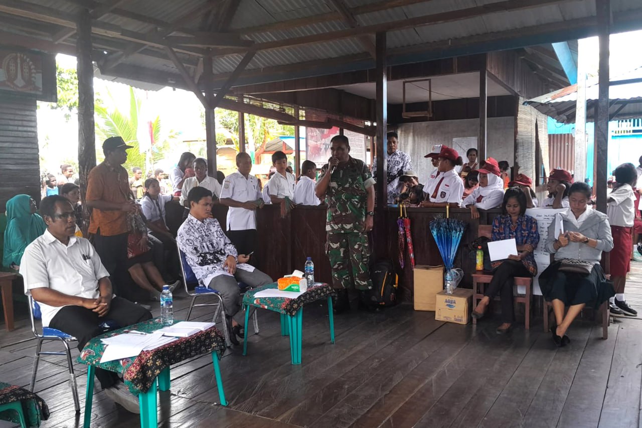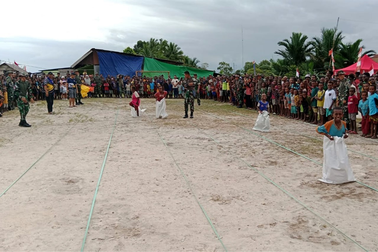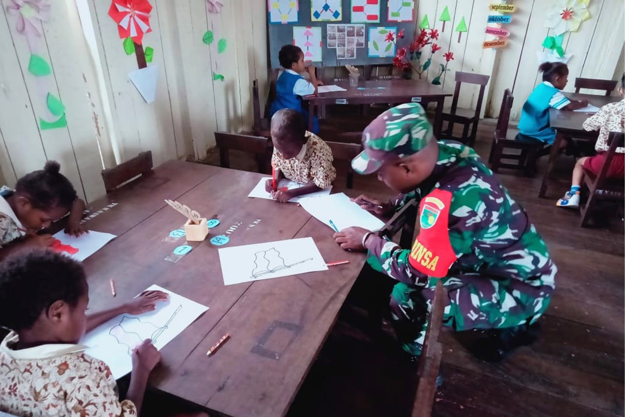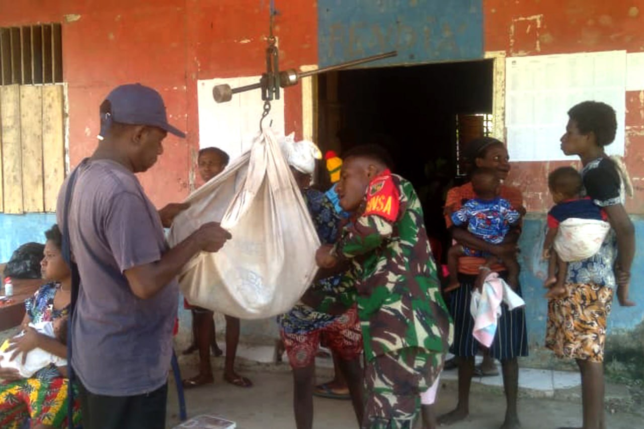 Babinsa Koramil 1707-06/Okaba Kodim 1707/Merauke Sertu Dwi Indarwanto membantu keluarga Bapak Sidra Kiring salah satu masyarakat Kampung Okaba Distrik Okaba Kabupaten Merauke - Papua Selatan memperbaiki atap rumahnya. . . . 0