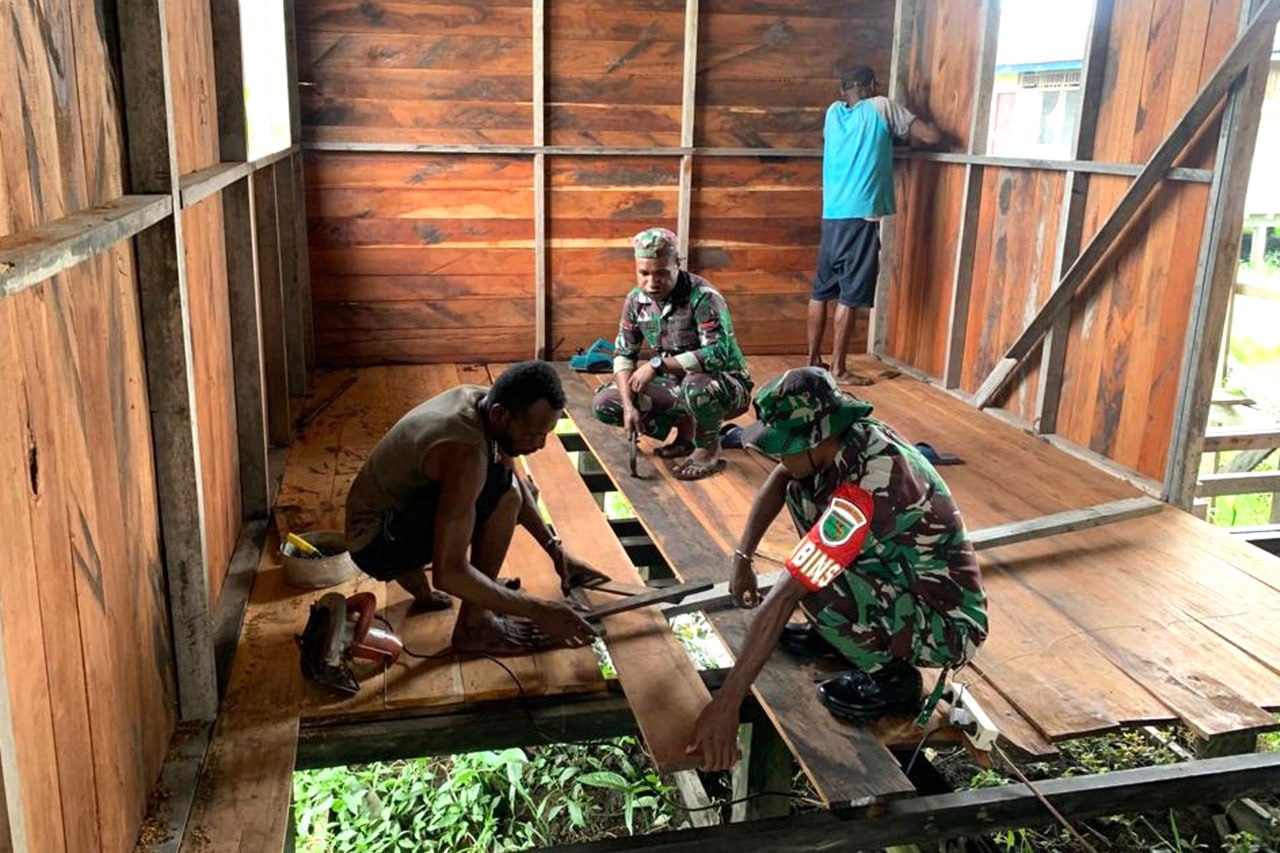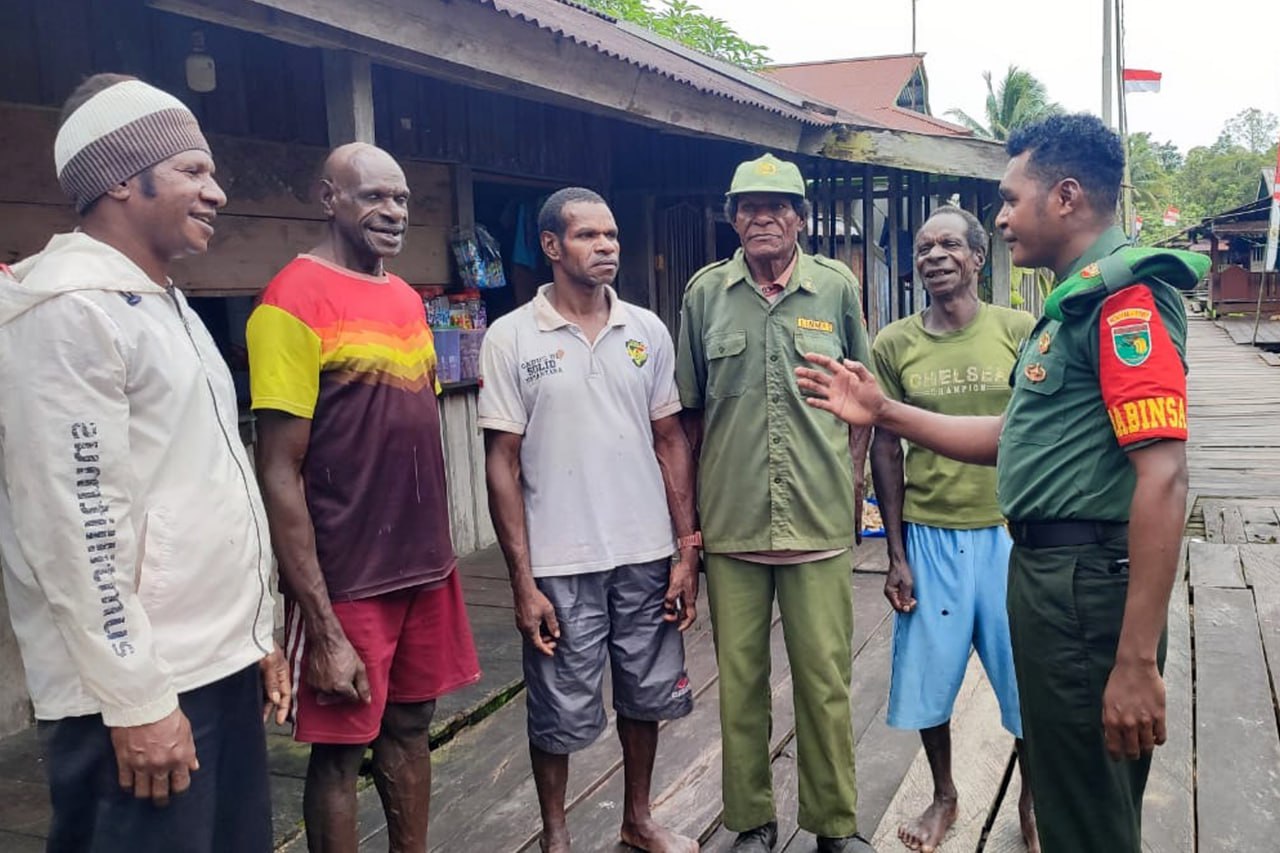 Tiga personel Babinsa Koramil 1707-19/Atsj Kodim 1707/Merauke yang dipimpin oleh Serda Tantinus J. Numberi melaksanakan pendampingan kepada petugas kesehatan Puskesmas Atsj dalam menggelar pelayanan kesehatan imunisasi . . . 0