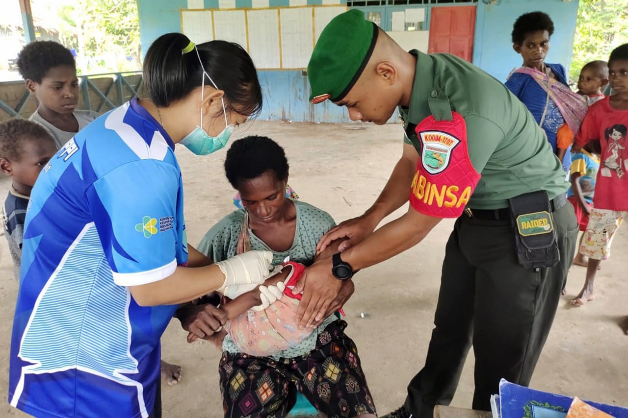 Dalam rangka ikut serta mewujudkan balita yang sehat, Babinsa Koramil 1707-14/Senggo Kodim 1707/Merauke Sertu Hendro Triwibowo dan Praka Rahmat Setiawan melaksanakan pendampingan kepada masyarakat Kampung Senggo dalam . . . 0