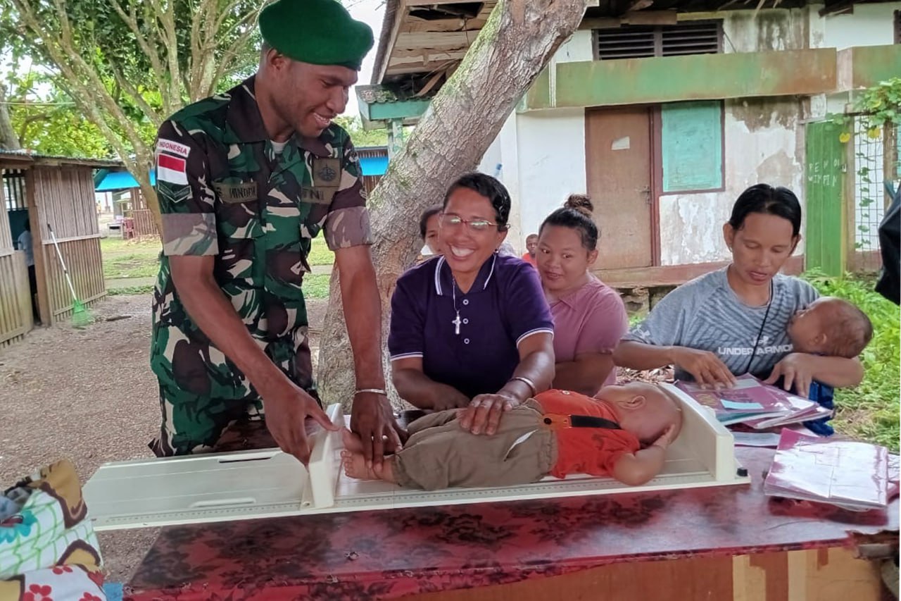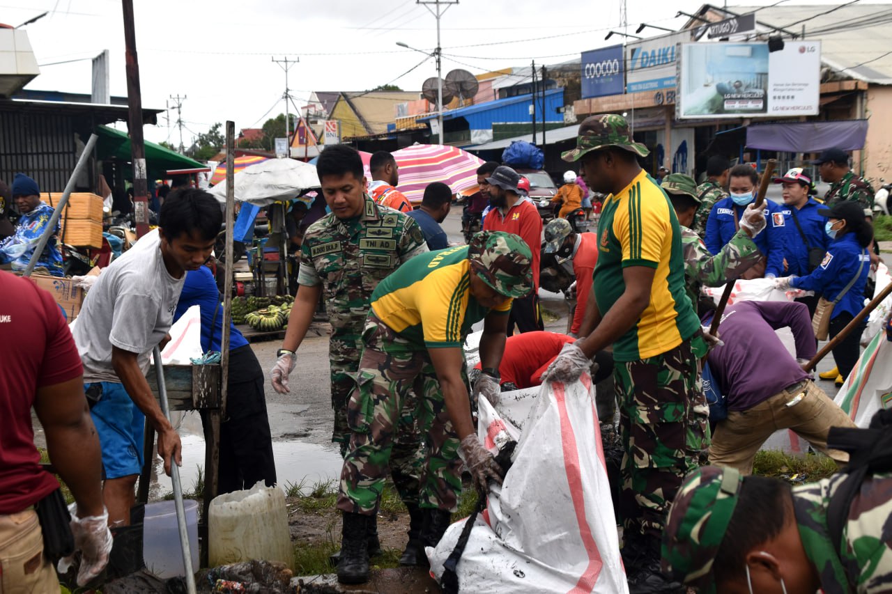 PERSONEL KODIM MERAUKE IKUTI KERJA BHAKTI DALAM RANGKA HUT KE-5 DIVISI 3 KOSTRAD