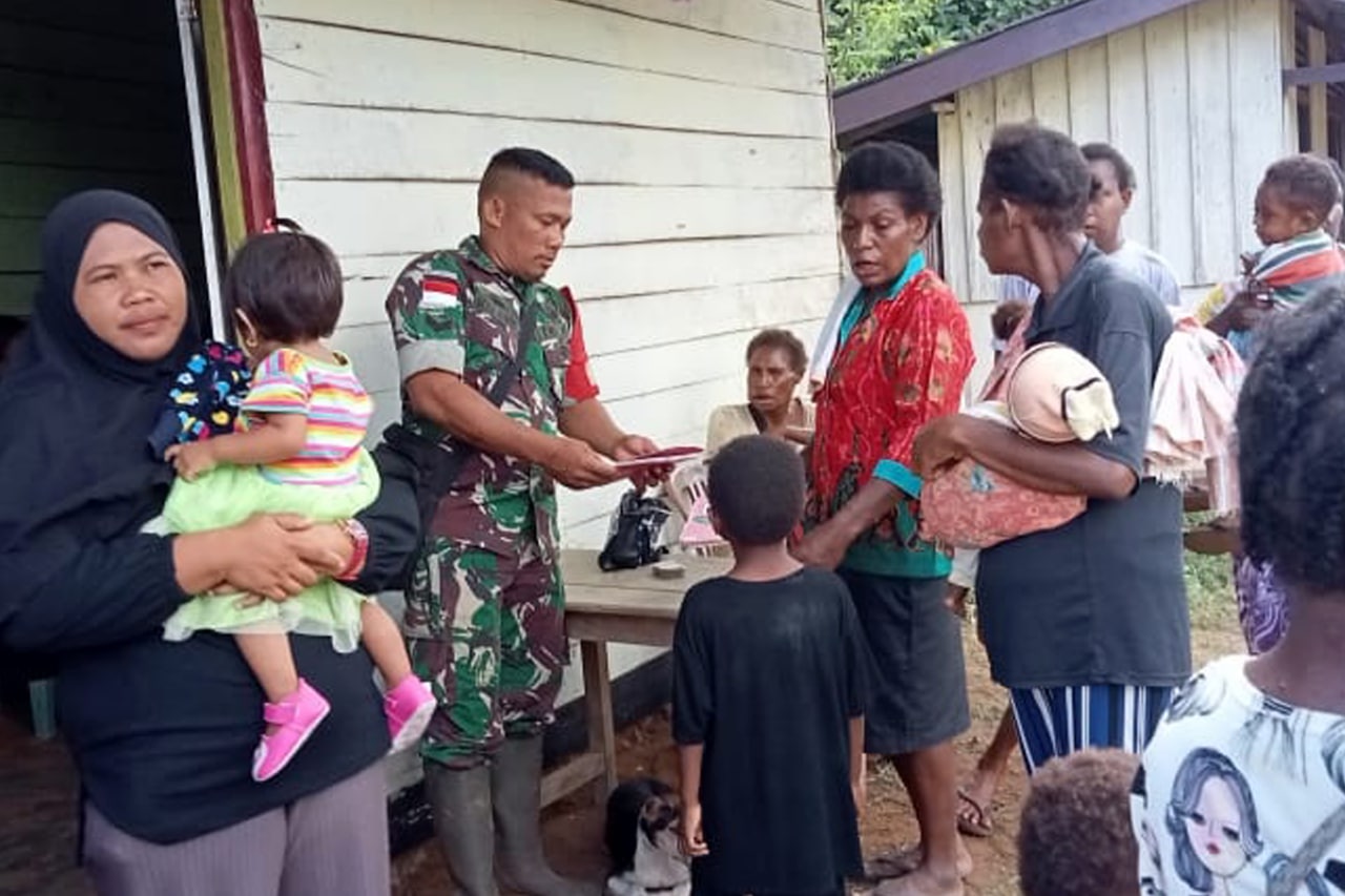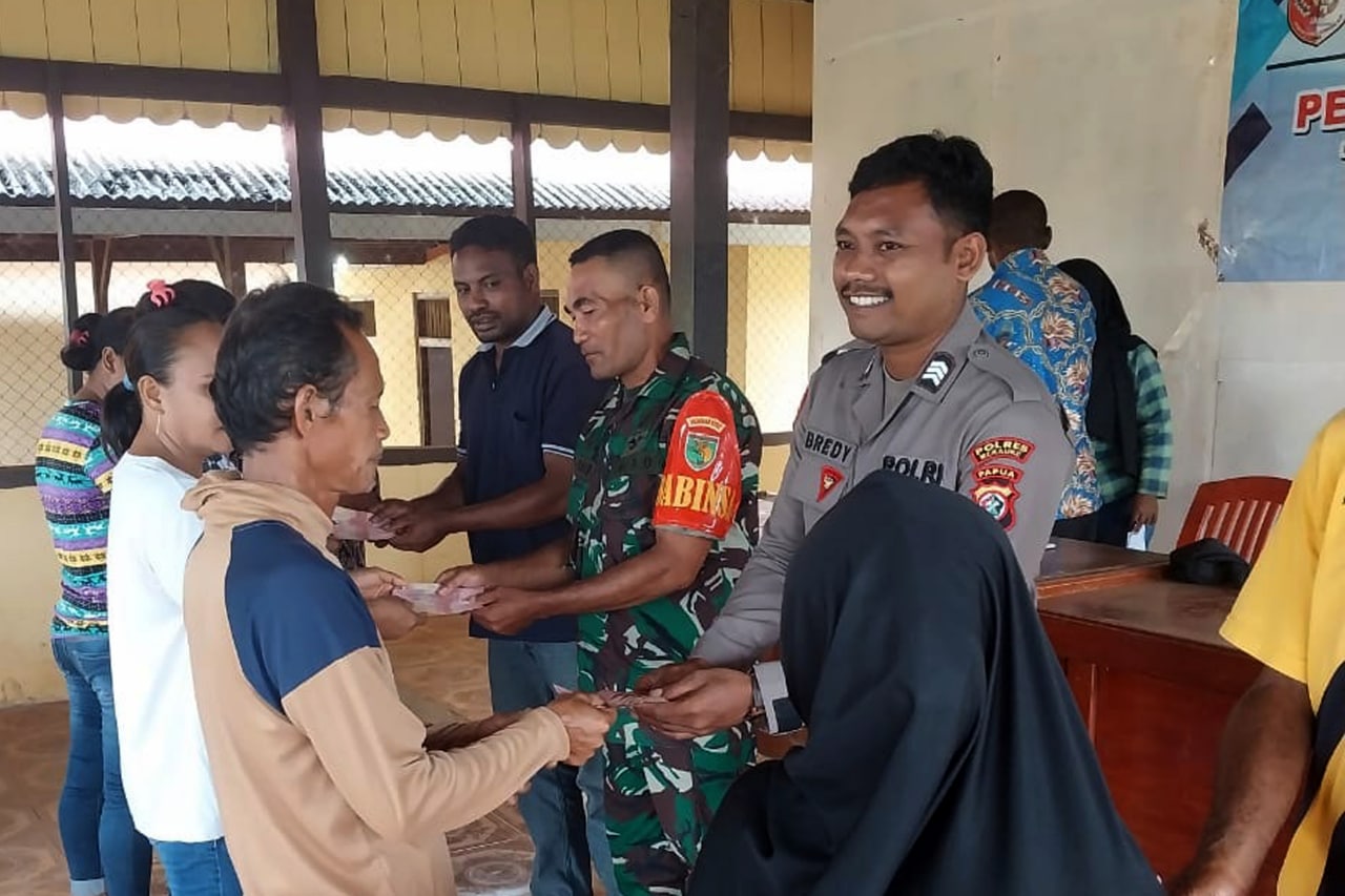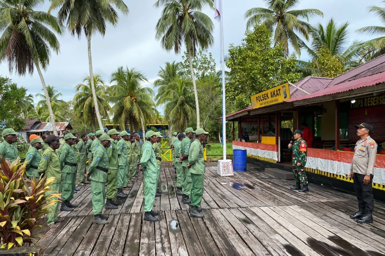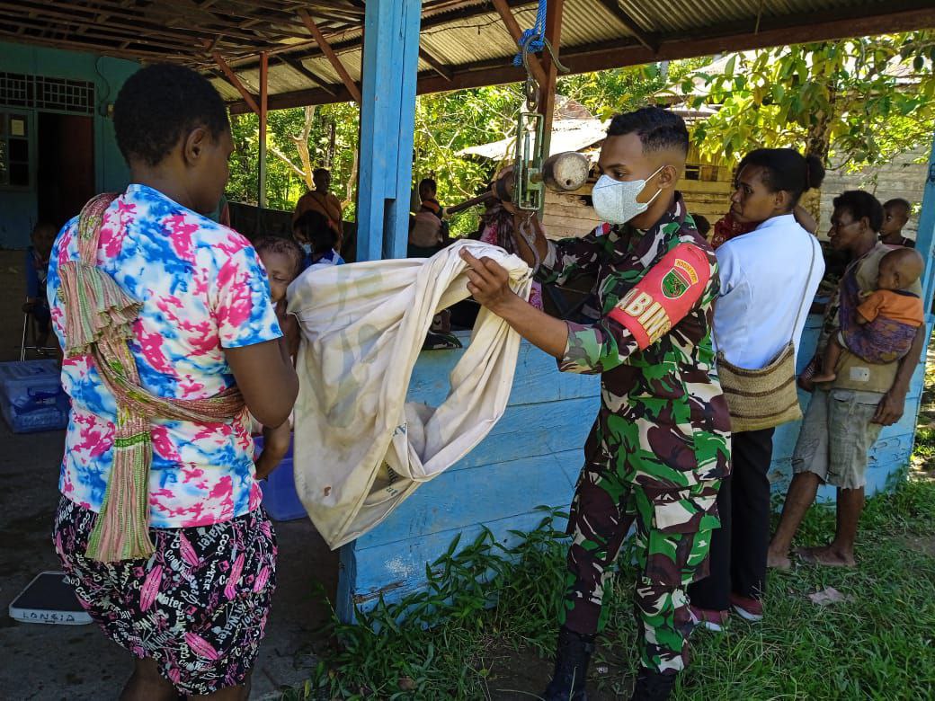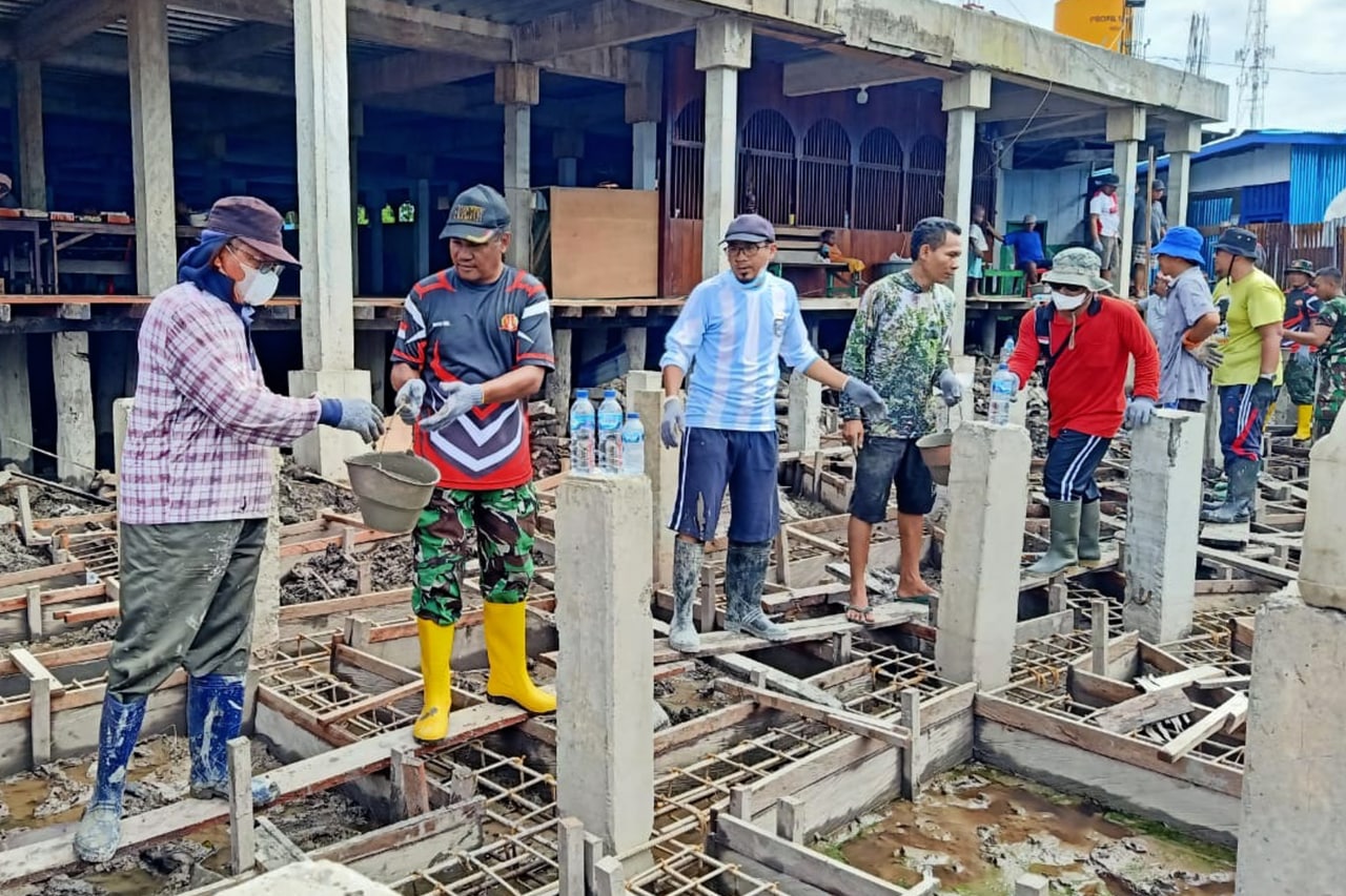 Babinsa Koramil 1707-08/Agats jajaran Kodim 1707/Merauke yang di pimpin langsung oleh Danramil 1707-08/Agats Kapten Inf Rony K. Retraubun bersama masyarakat Agats melaksanakan kerja bhakti pengecoran pondasi bangunan . . . 0