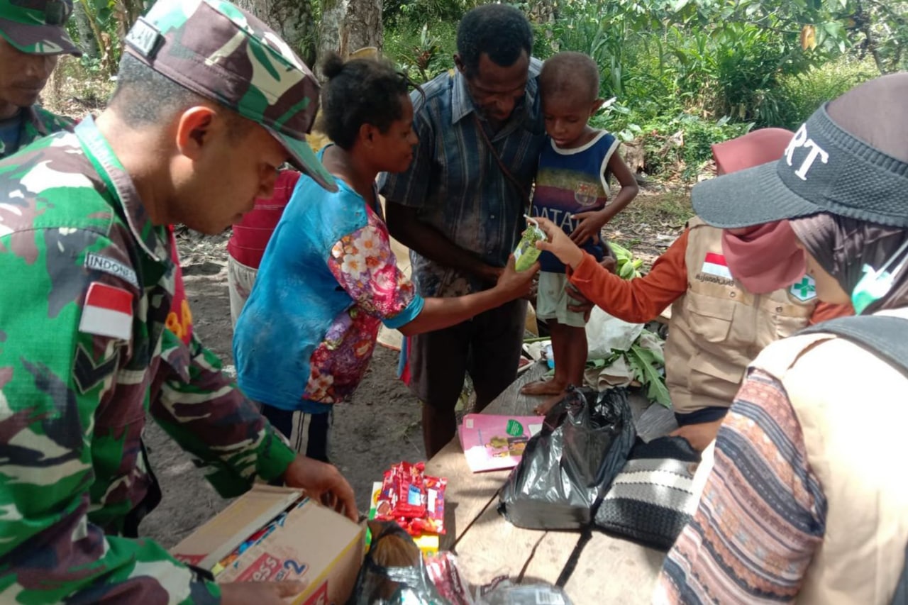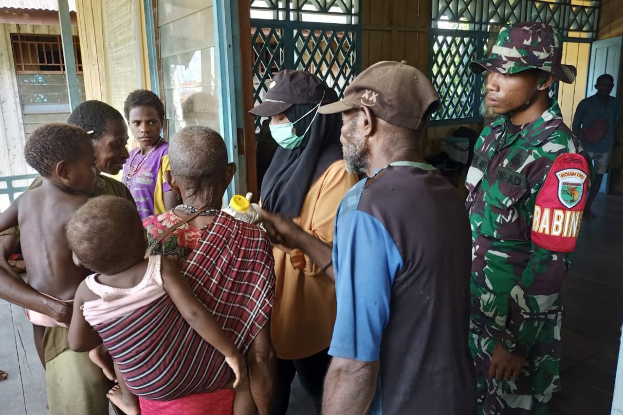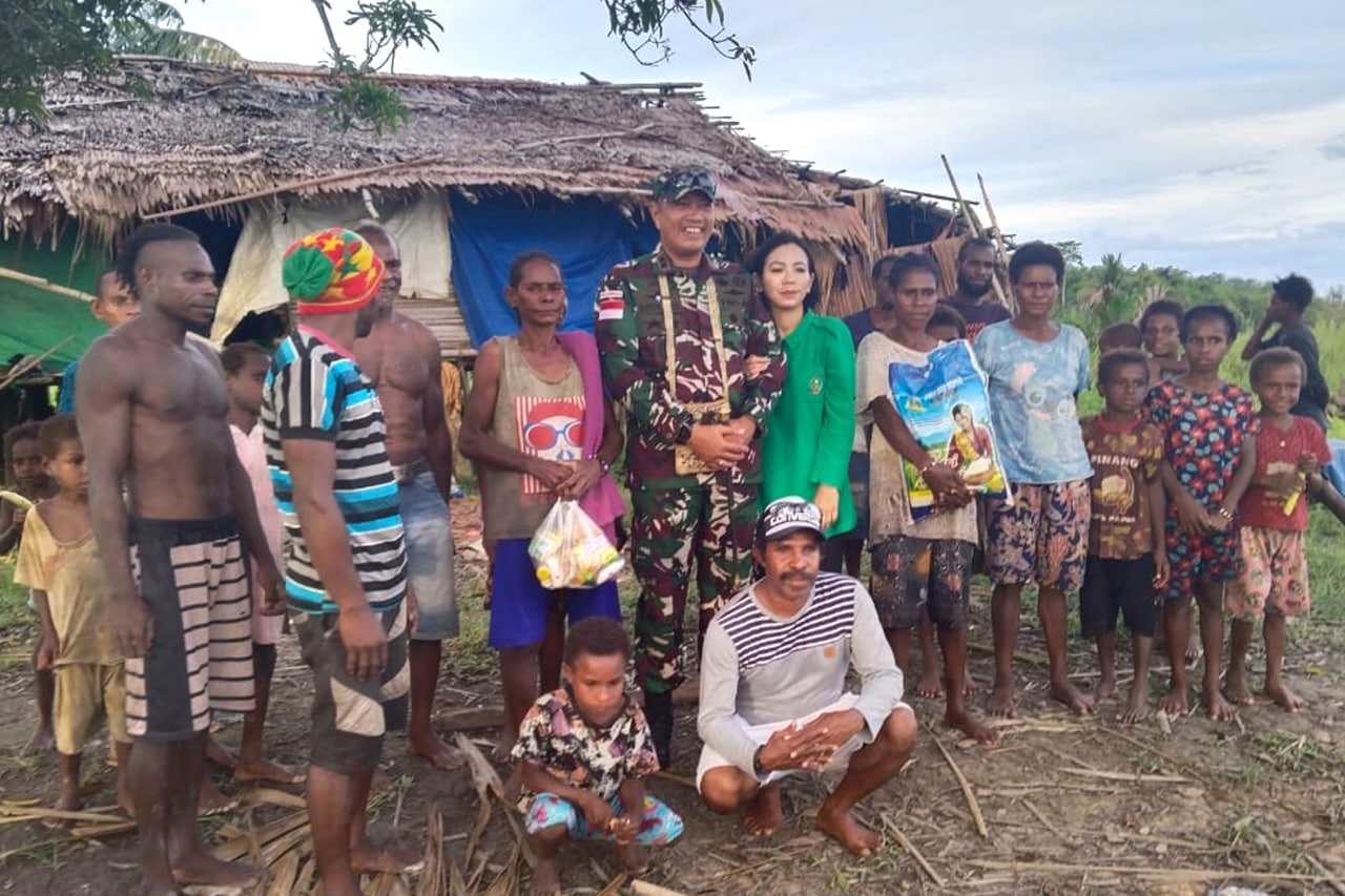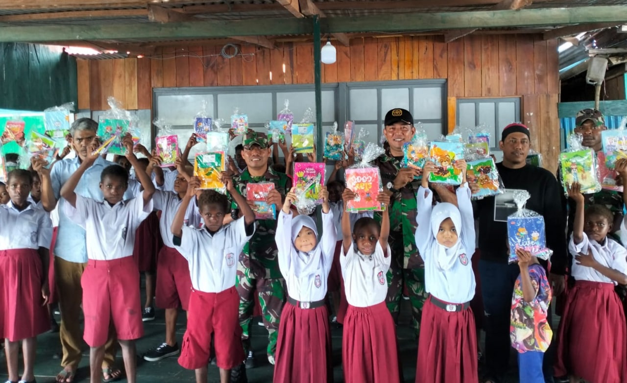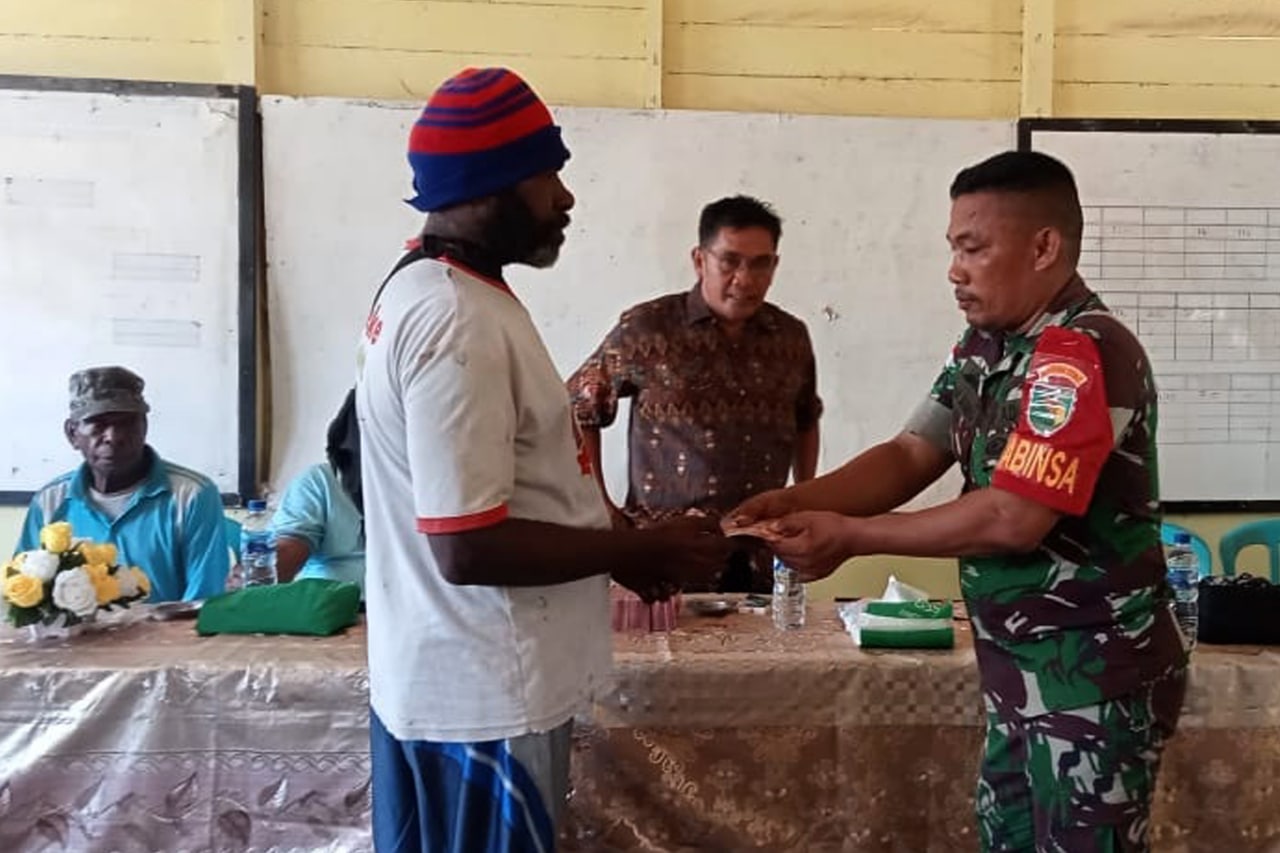 Babinsa Koramil 1707-08/Agats jajaran Kodim 1707/Merauke yang di pimpin langsung oleh Danramil 1707-08/Agats Kapten Inf Rony K. Retraubun bersama masyarakat Agats melaksanakan kerja bhakti pengecoran pondasi bangunan . . . 0
