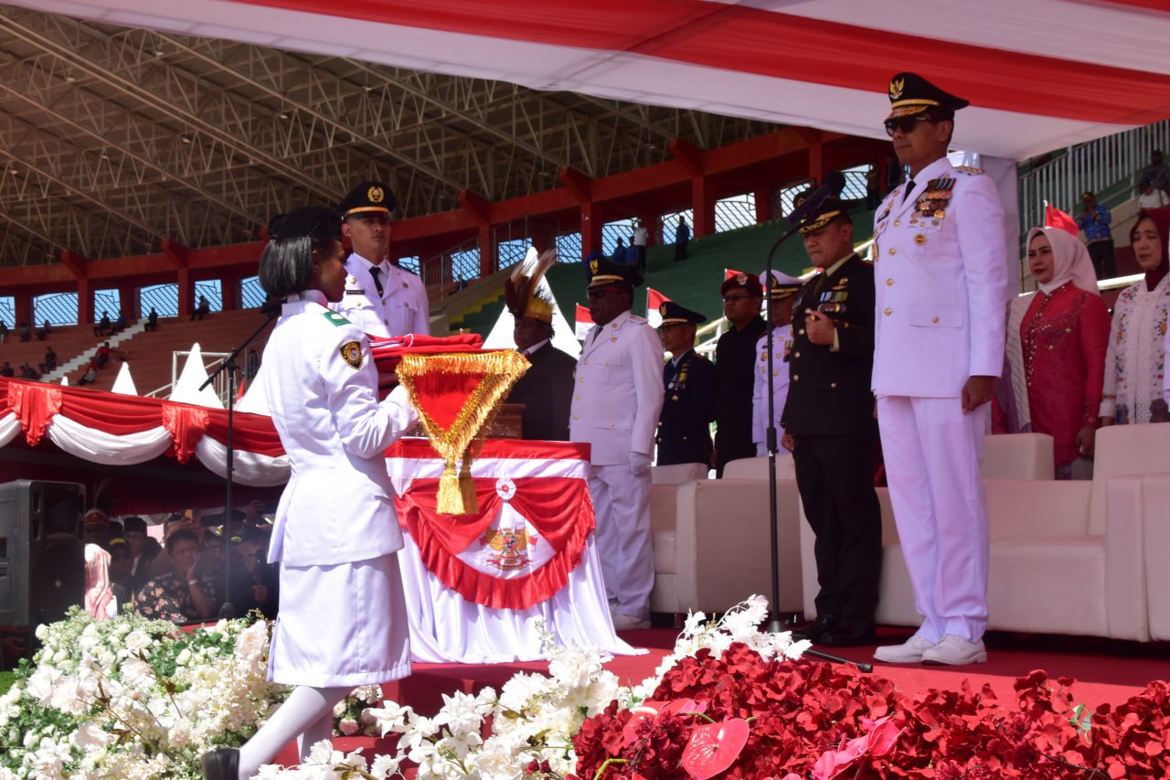 Komandan Kodim 1707/Merauke Letkol Inf Bayu Kriswandito, S.Hub. Int., M.H.I. dengan didampingi Ketua Persit KCK Cabang XVIII Kodim 1707 Merauke Ny. Nita Bayu Kriswandito mengikuti Upacara Detik Detik Proklamasi . . . 0